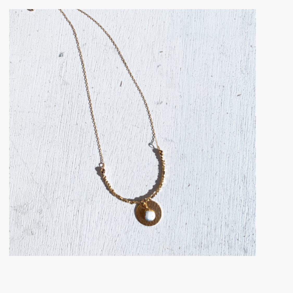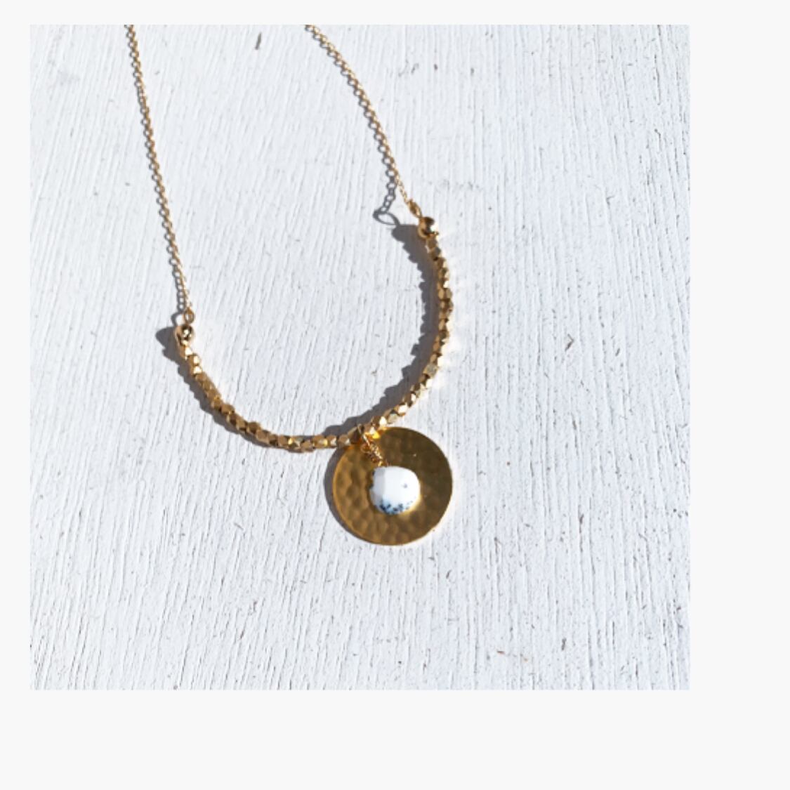 打ちっぱなしゴールドプレートにデンドライトオパールを合わせたシンプルなネックレス。