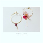ピンクのグラデが綺麗なお花とラフカットのピンクトルマリンの左右デザインの違うアシメントリーの大人らしいお花のピアス、イヤリングです。