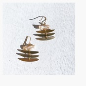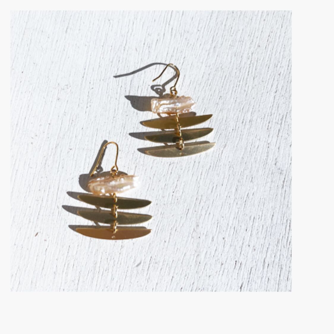 珍しいオーバル形のパーツを淡水パールと合わせたピアス、イヤリングです。