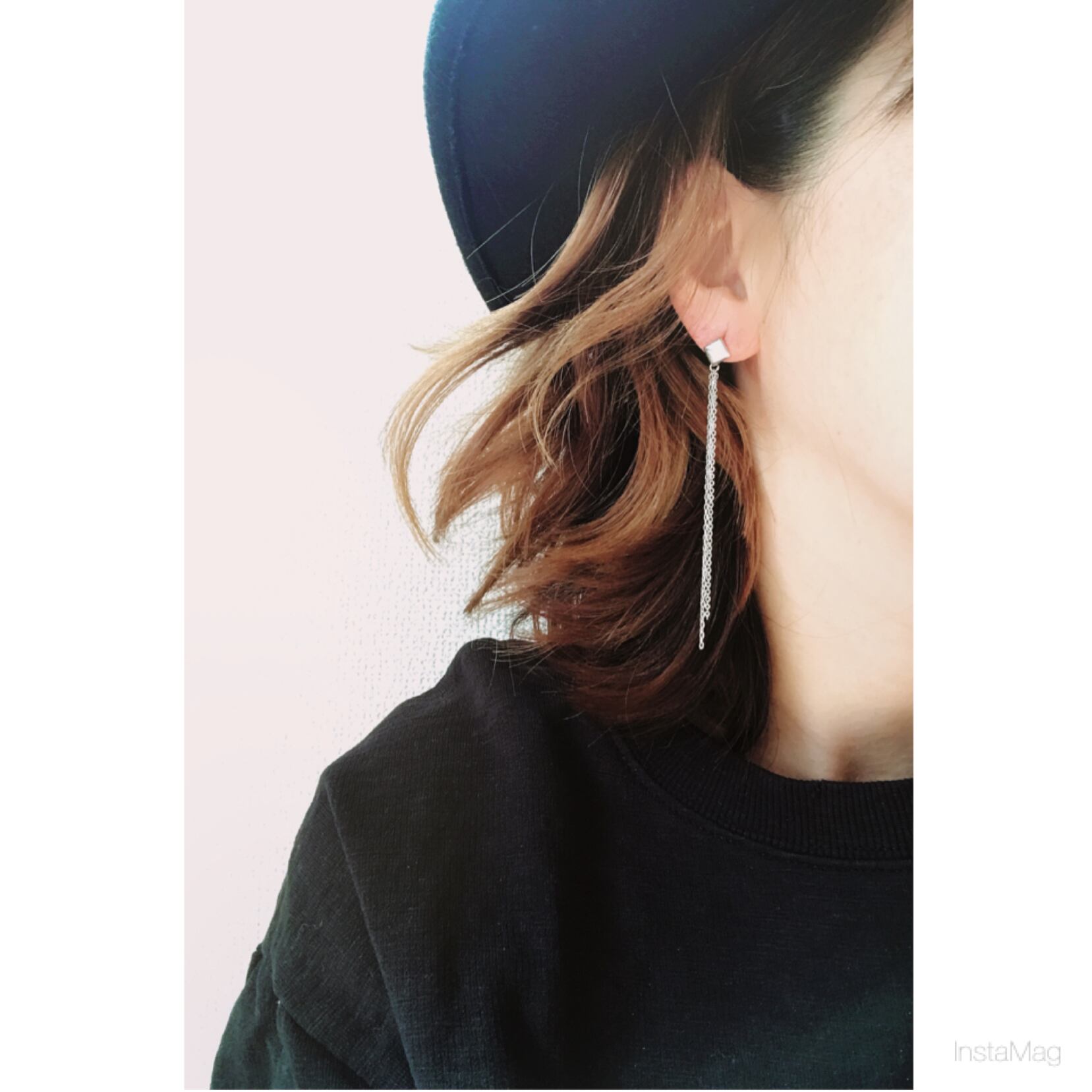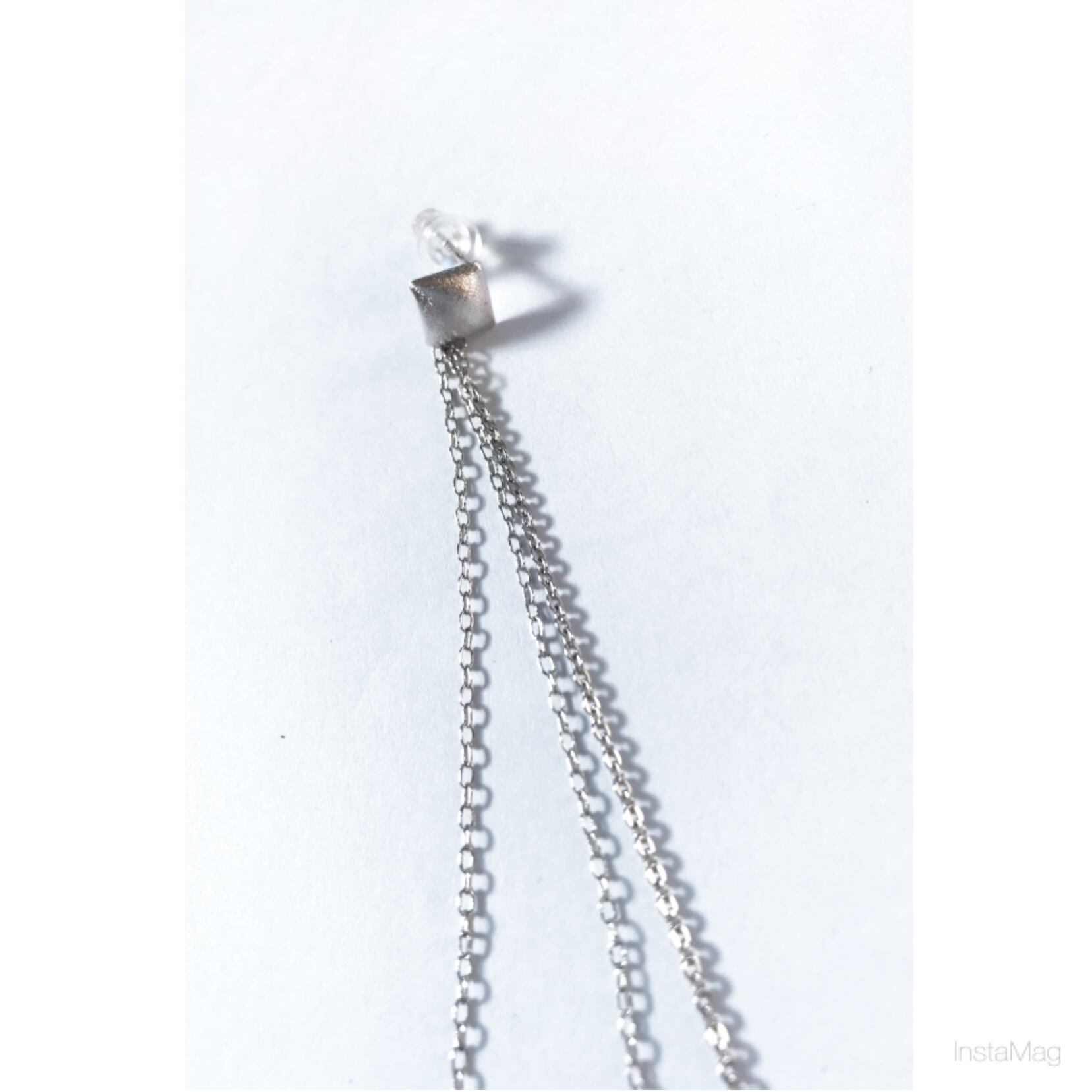スタッズのモチーフポストピアスにロングな華奢なチェーンでシンプルなんだけど、きちんと存在感出せる、そんなピアスです。