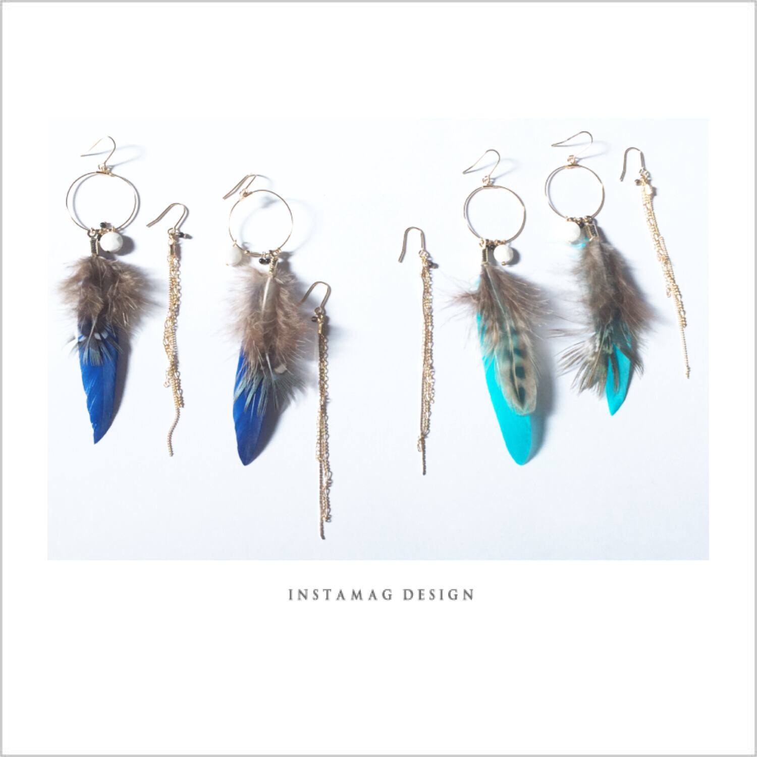 N261羽ピアス●フェザー●ボヘミアン●アシメントリー●イヤリング