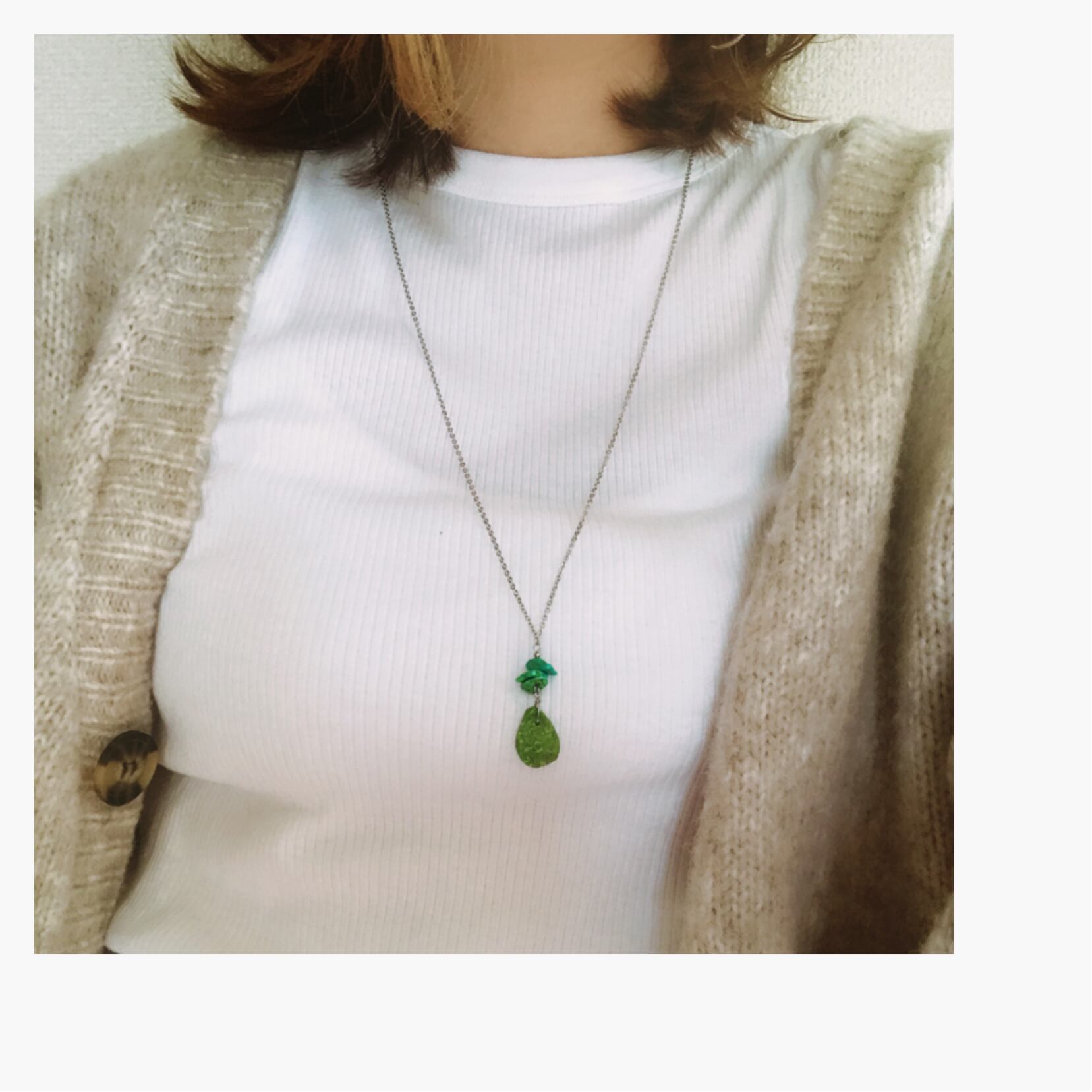 ターコイズ×ターコイズののシンプルでとっても使いやすいロングネックレスです!