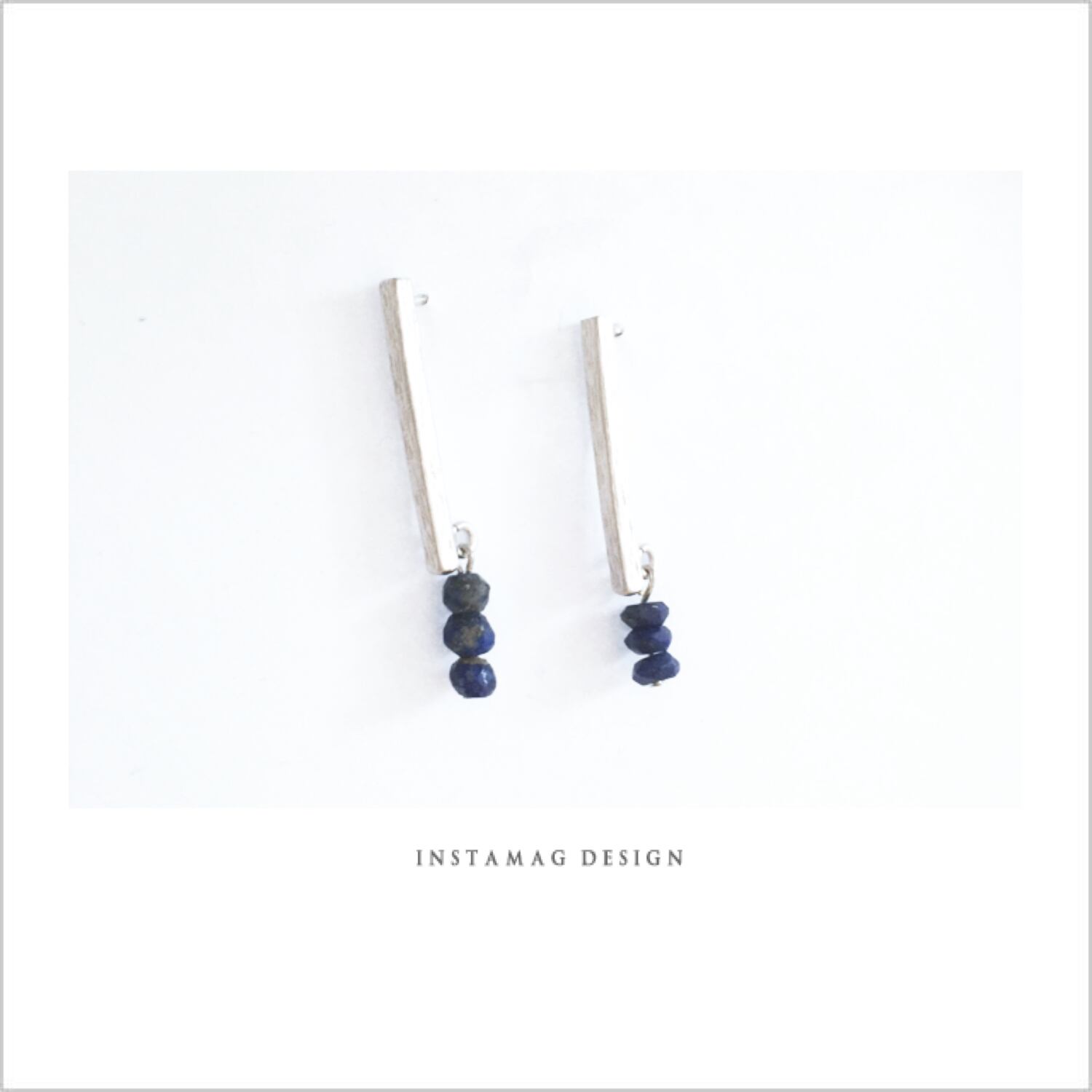 シルバーのバーにラピスラズリ、とてもシンプルで使いやすいピアスです!