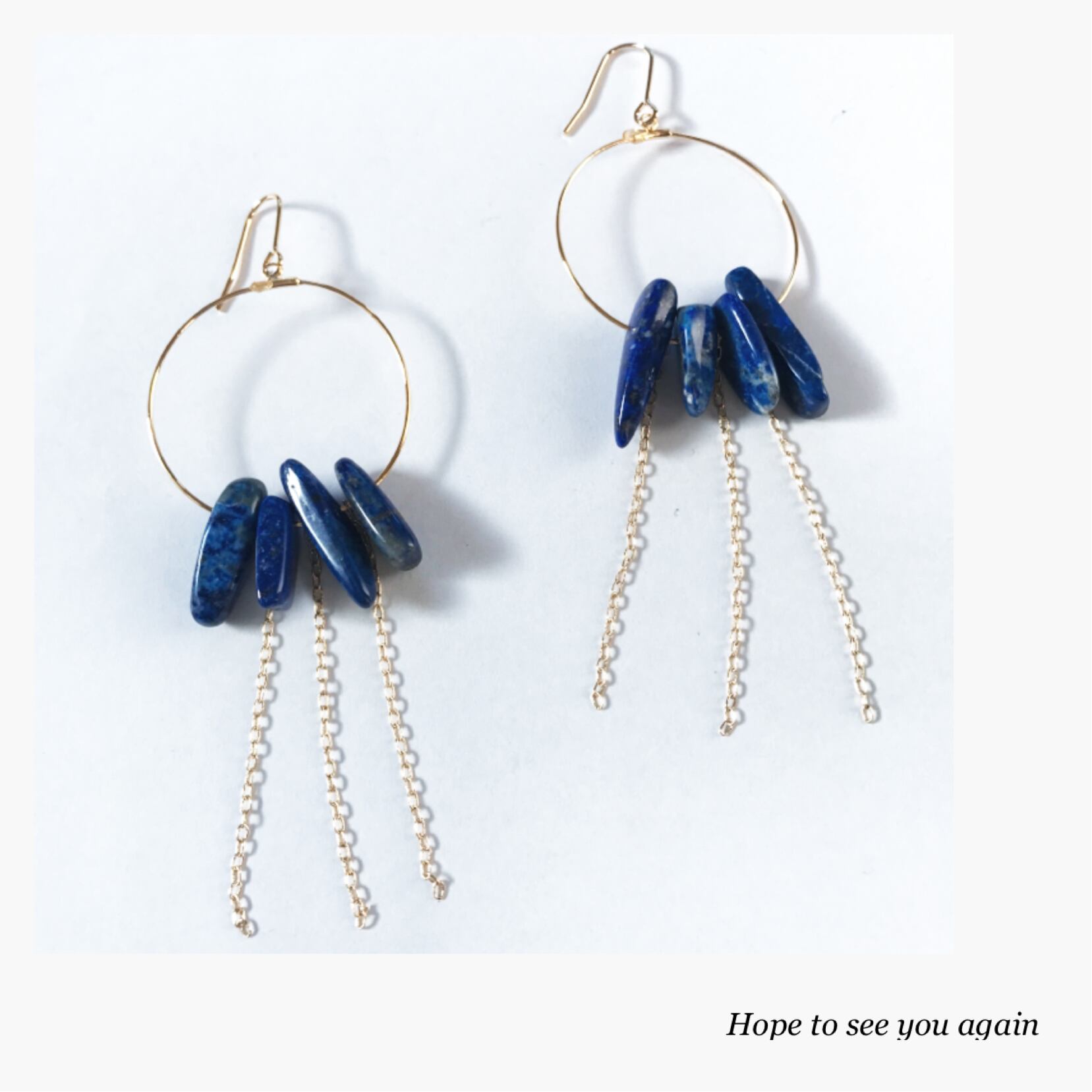 スティックモチーフの天然石とチェーンで存在感ある大人ぽいフープピアス、イヤリングです。