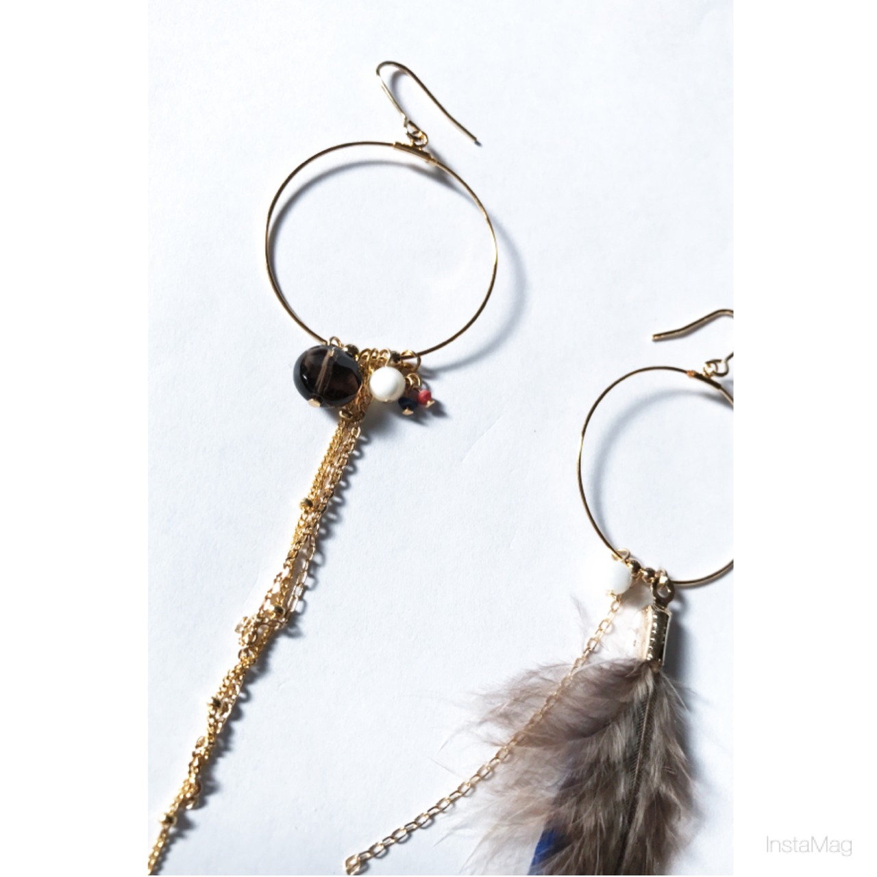 羽、マグナサイト、マザーオパール、スモーキークオーツ、メッキ