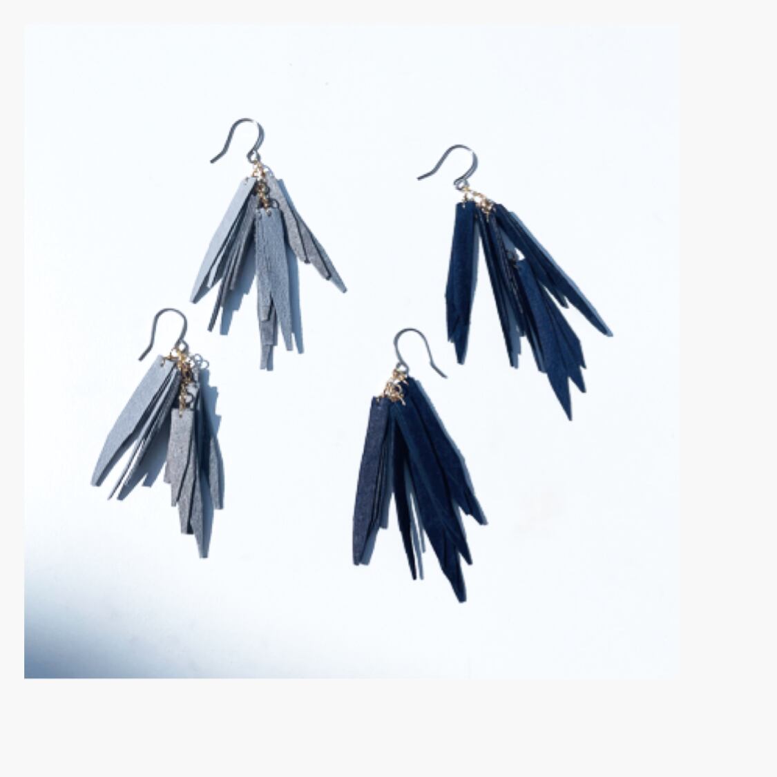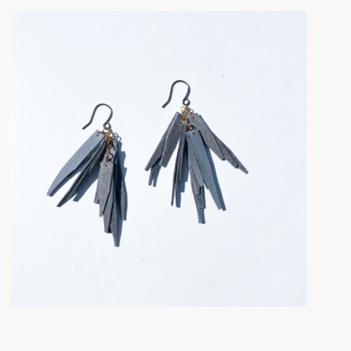 革を一枚一枚カットし、バサっと存在感あるレザーフリンジのピアス、イヤリングです。