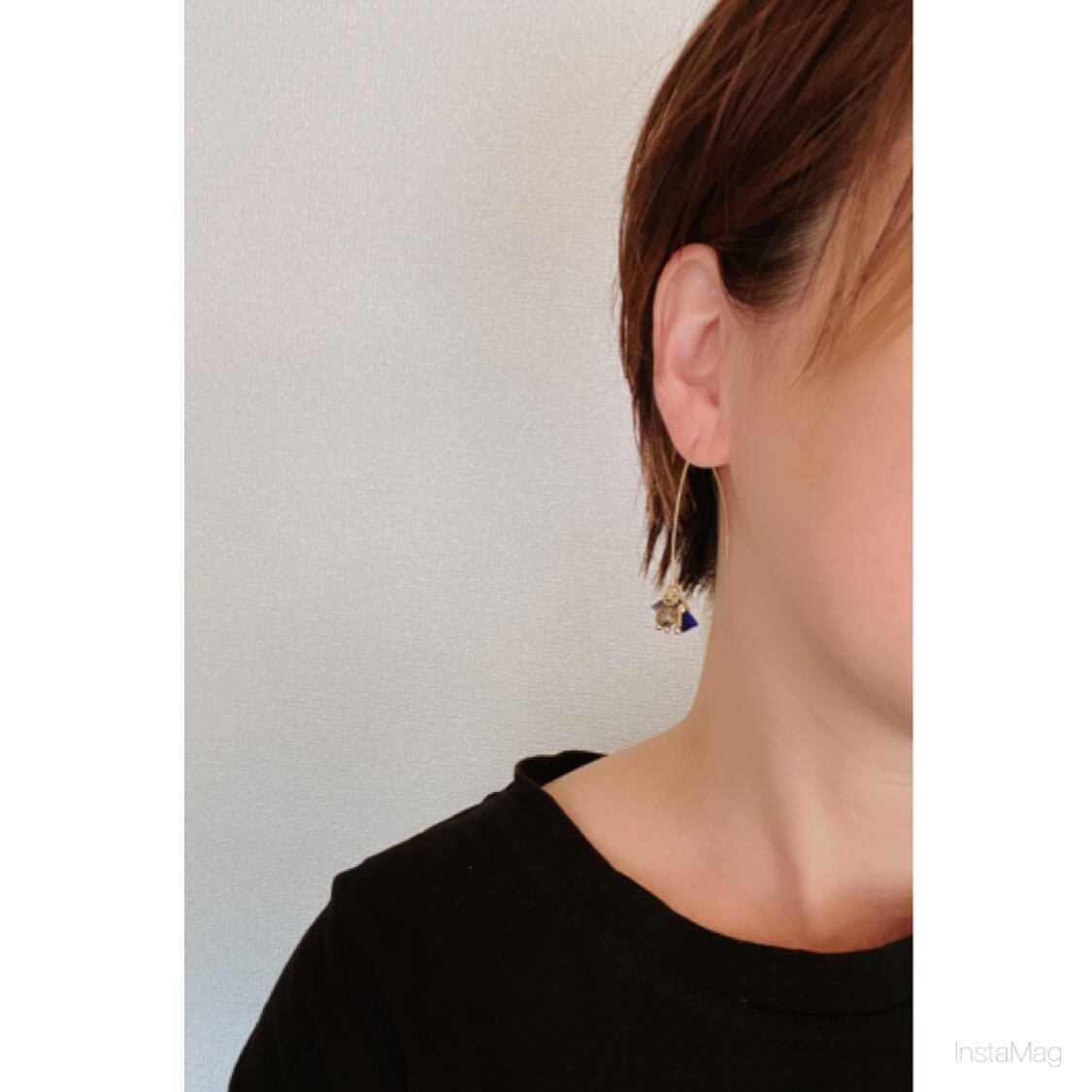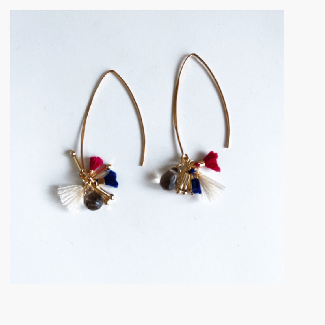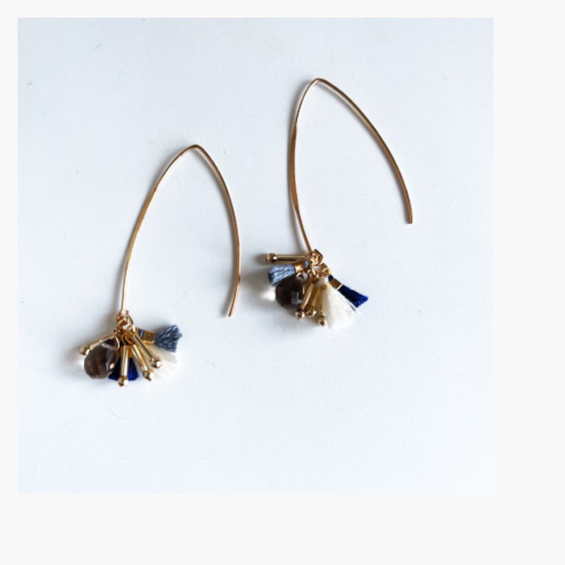 ミニタッセルとスモーキークォーツを合わせたピアス。