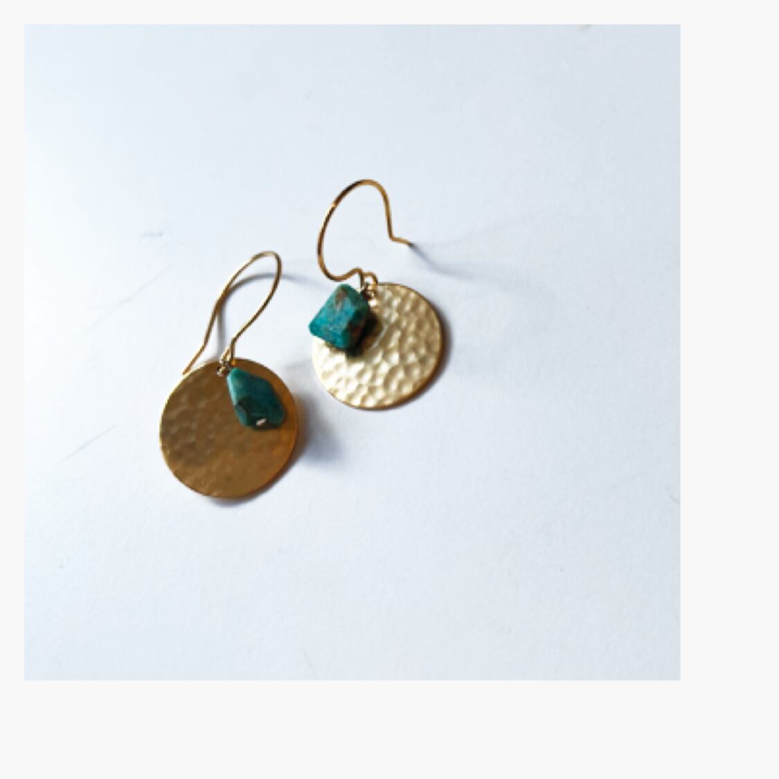 ゴールドの打ちっぱなしプレートにのアマゾナイトを合わせたシンプルなピアス、イヤリング。