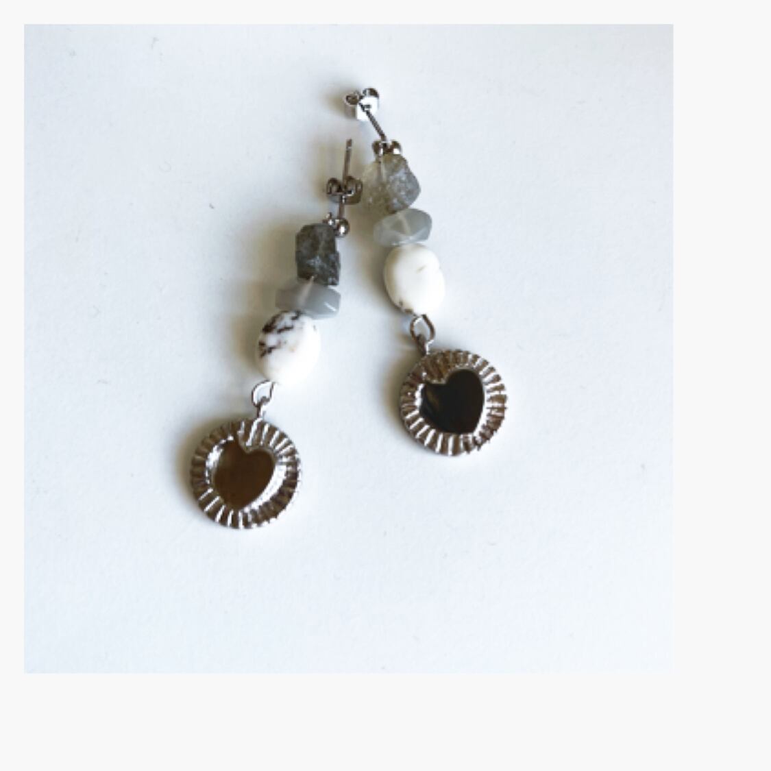 可愛すぎないハートモチーフに一目惚れして作ったピアス、イヤリングです。