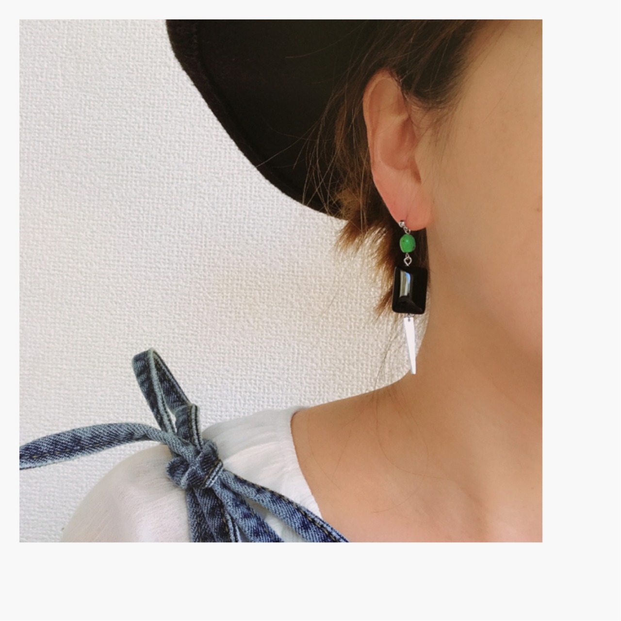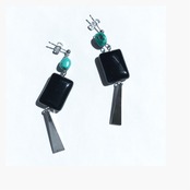 存在感あるオニキスとターコイズの組み合わせのピアス、イヤリングです。