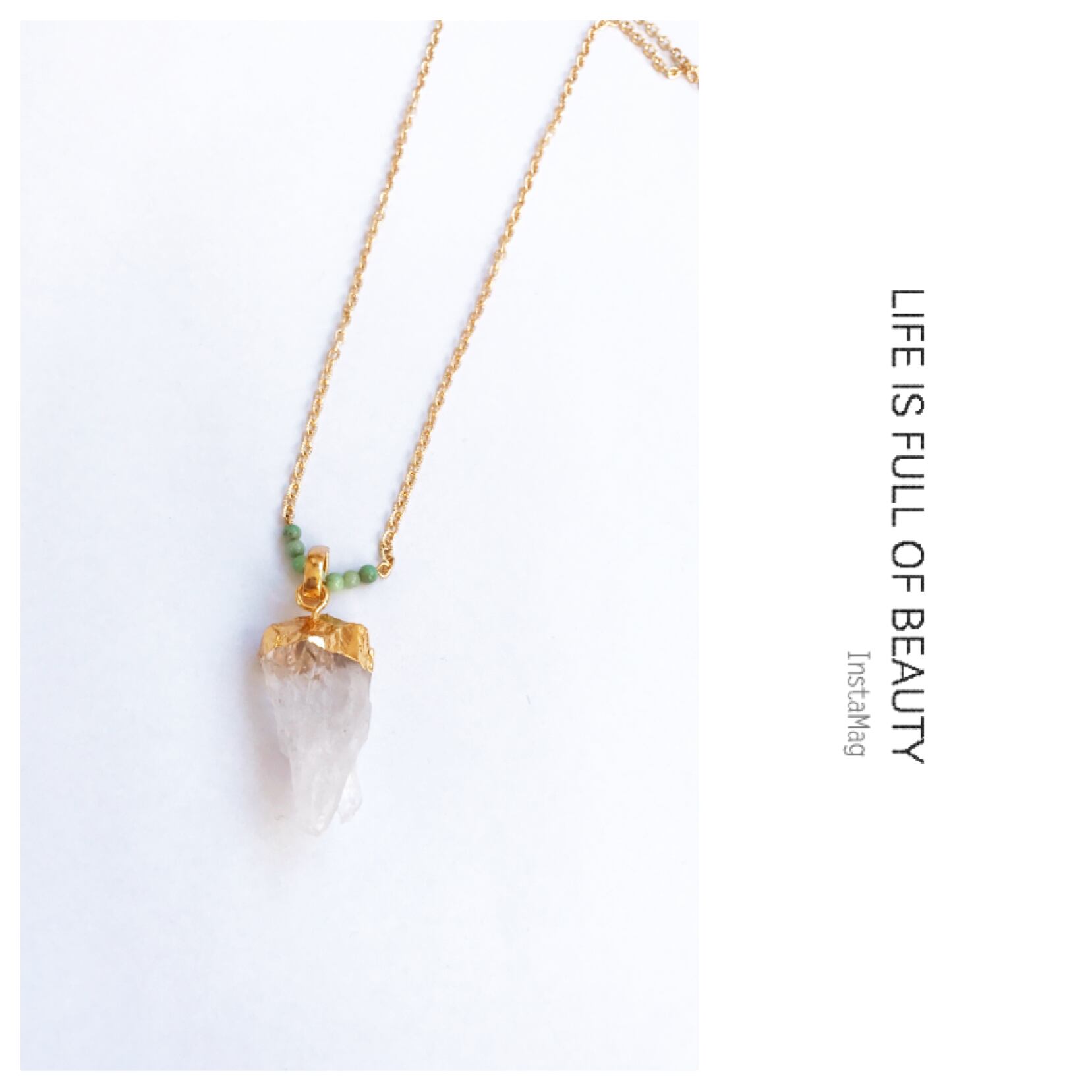 自然なクリスタルにグリーンカルセドニーをアクセントにしたロングネックレスです。