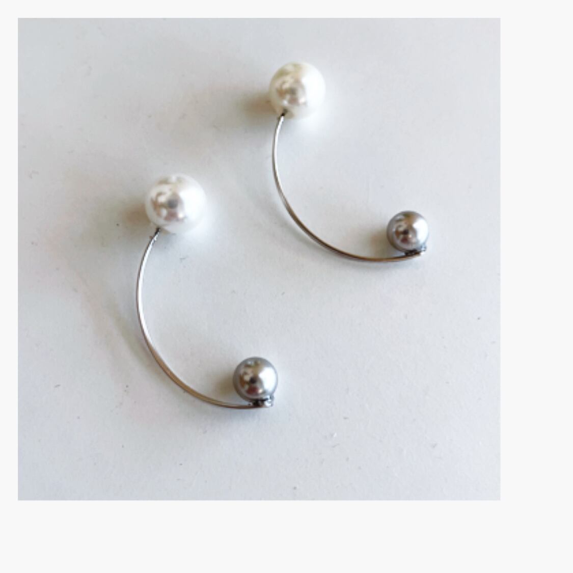 スワロフスキーのシルバーパールとパールのキャッチのシンプルデザイン2wayタイプのピアスです。