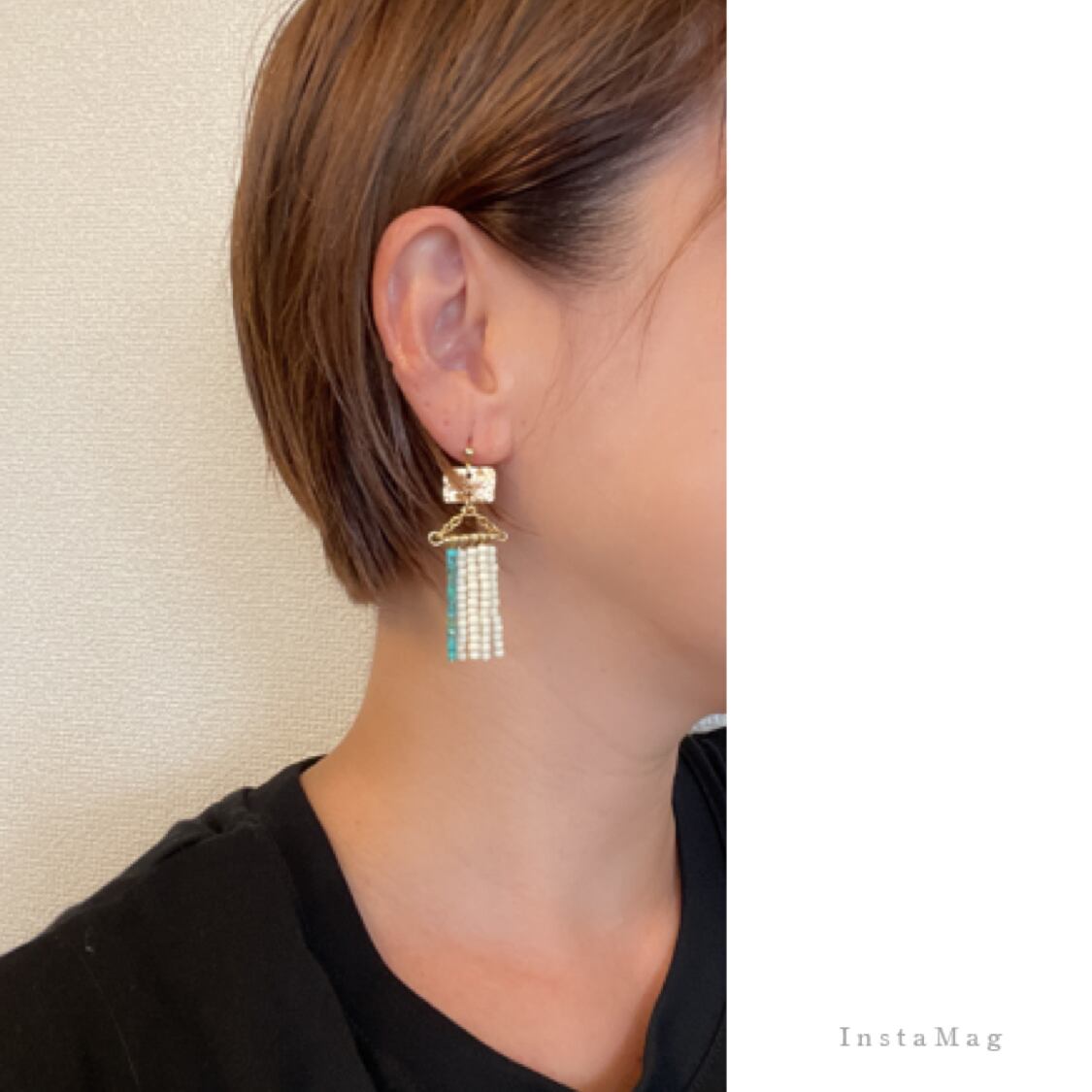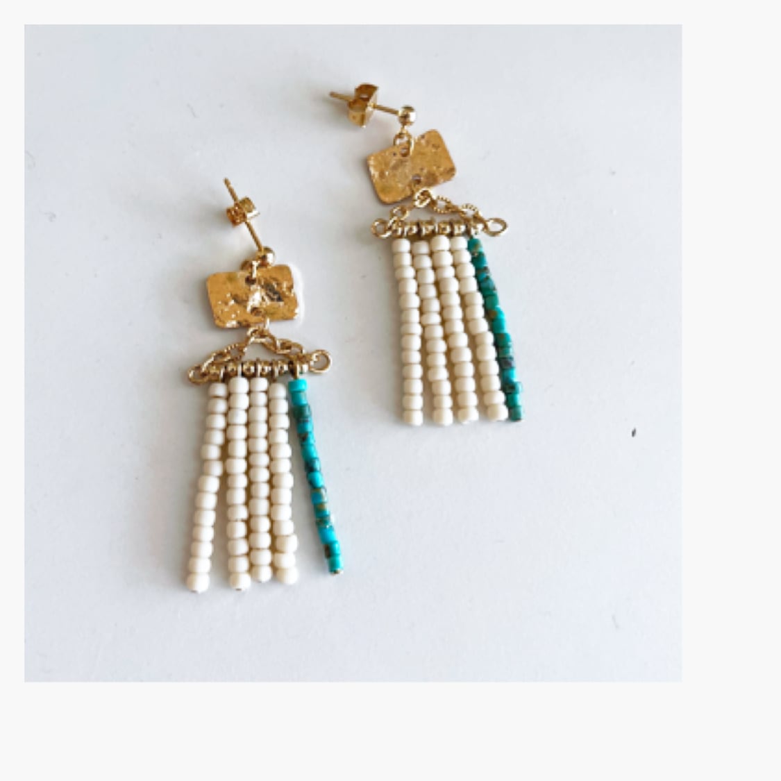 ターコイズとナチュラルホワイトビーズのフリンジピアス、イヤリングです。