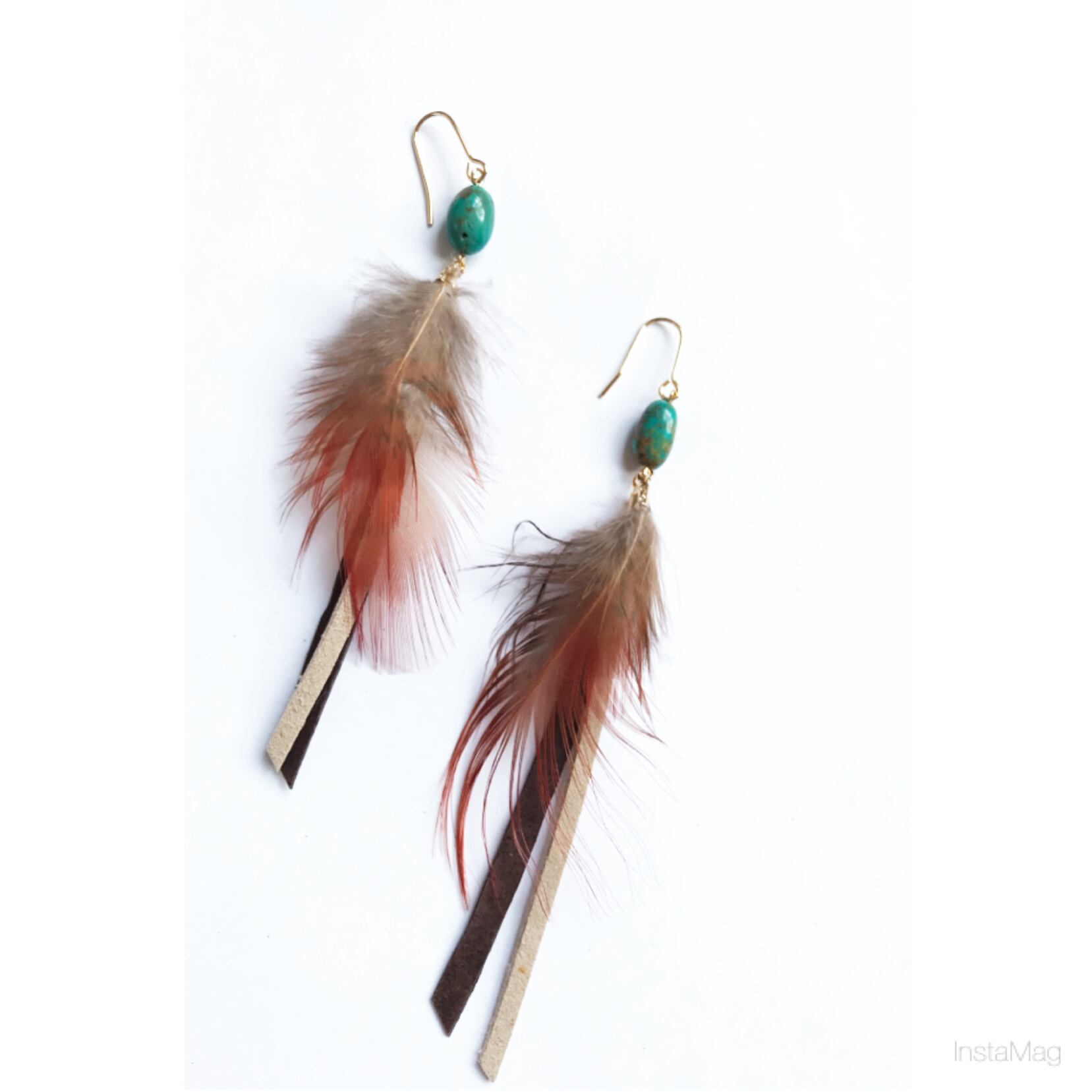 天然なターコイズを合わせたボヘミアンデザインのピアス、イヤリングです。