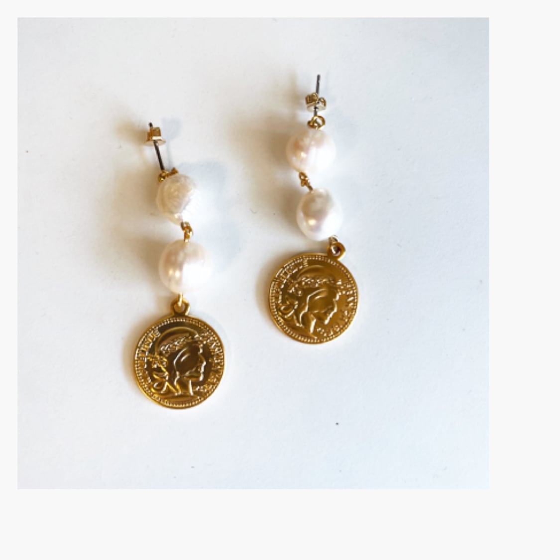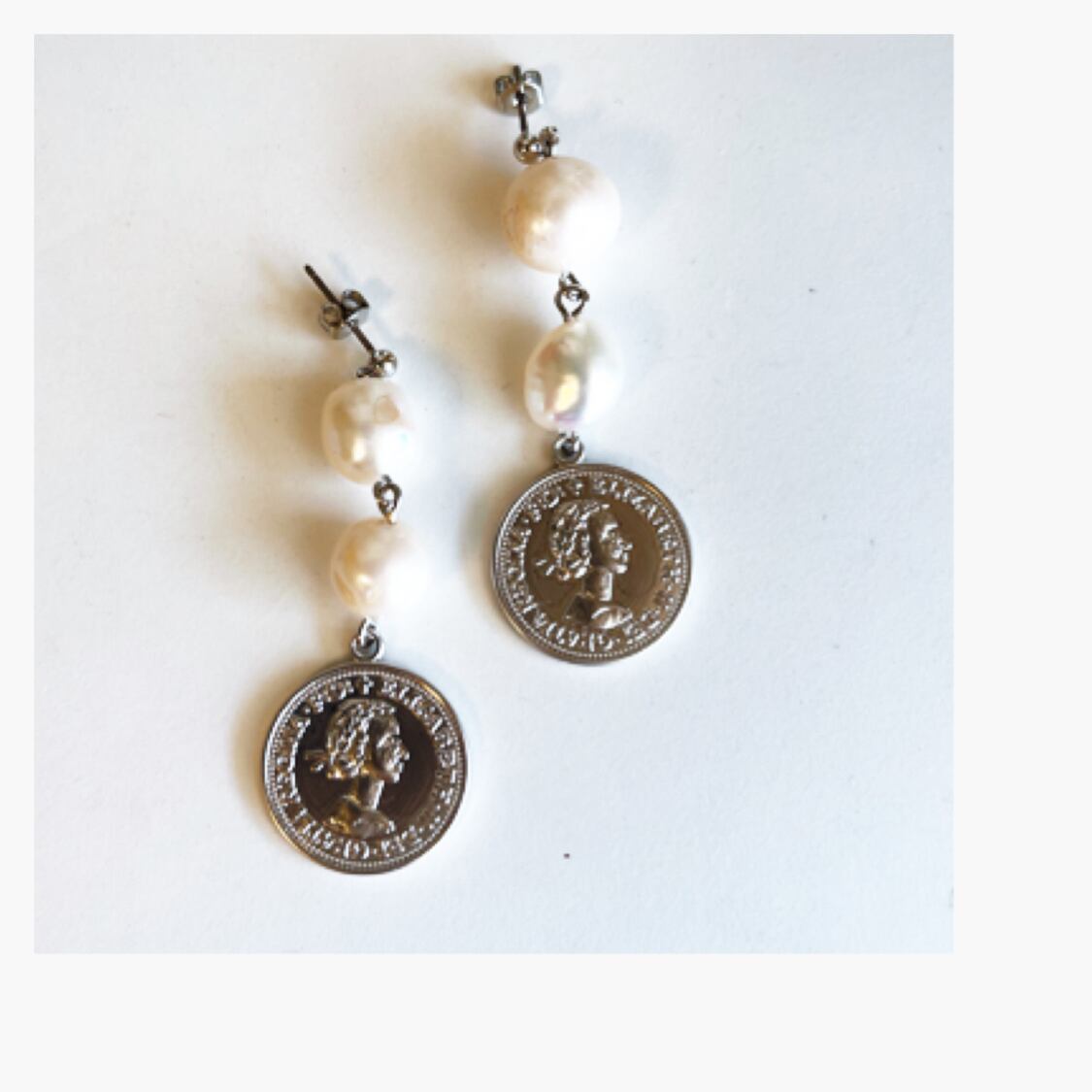 大粒な淡水パールとコインのピアス、イヤリングです。
