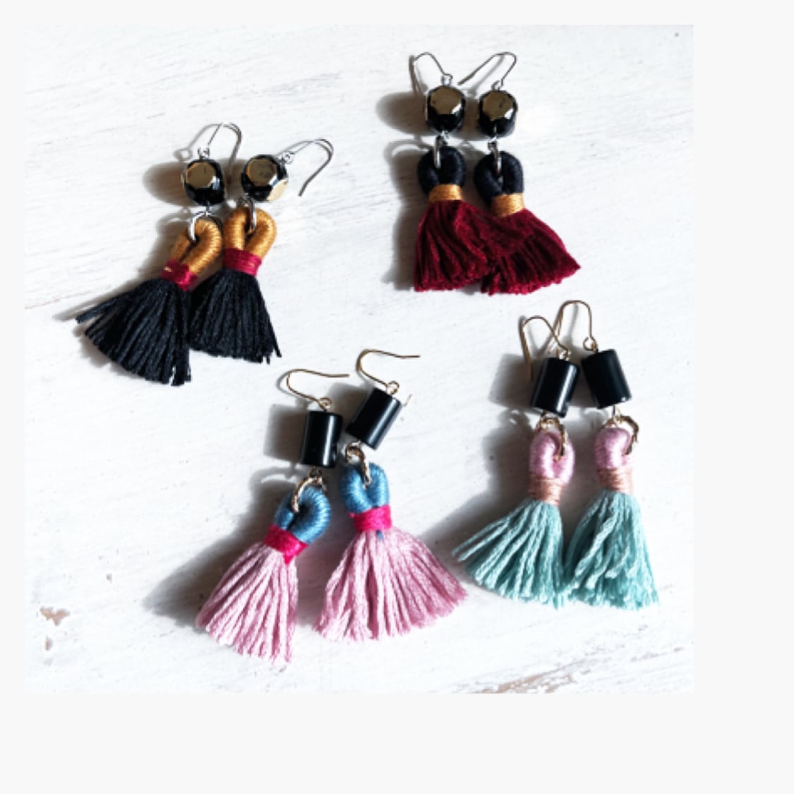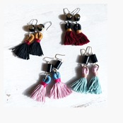 色の組み合わせで悩んじゃうタッセルをメインにしたピアス、イヤリングです。