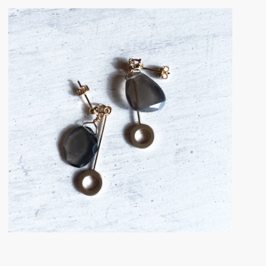 スモーキークォーツのカットと形に一目惚れして作ったピアス、イヤリング。