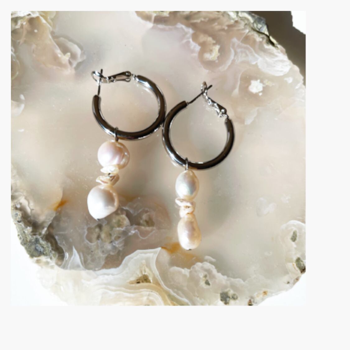 淡水パールを主役にしたどんなスタイルにも合わせやすいようにデザインしたシンプルなフープピアスです。