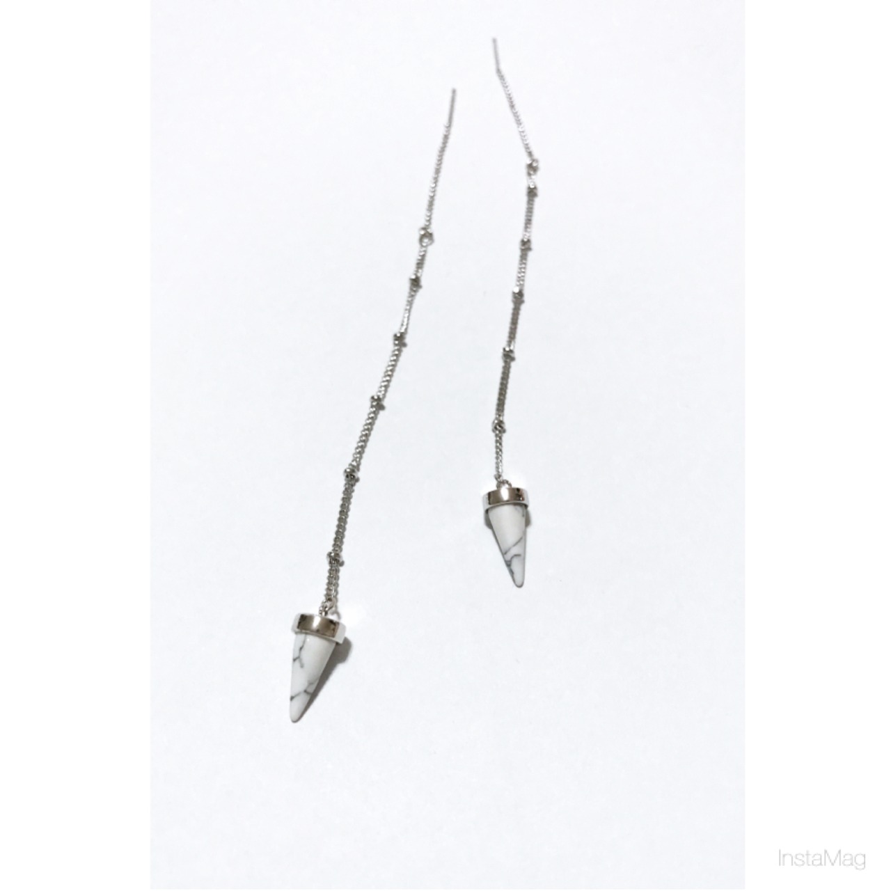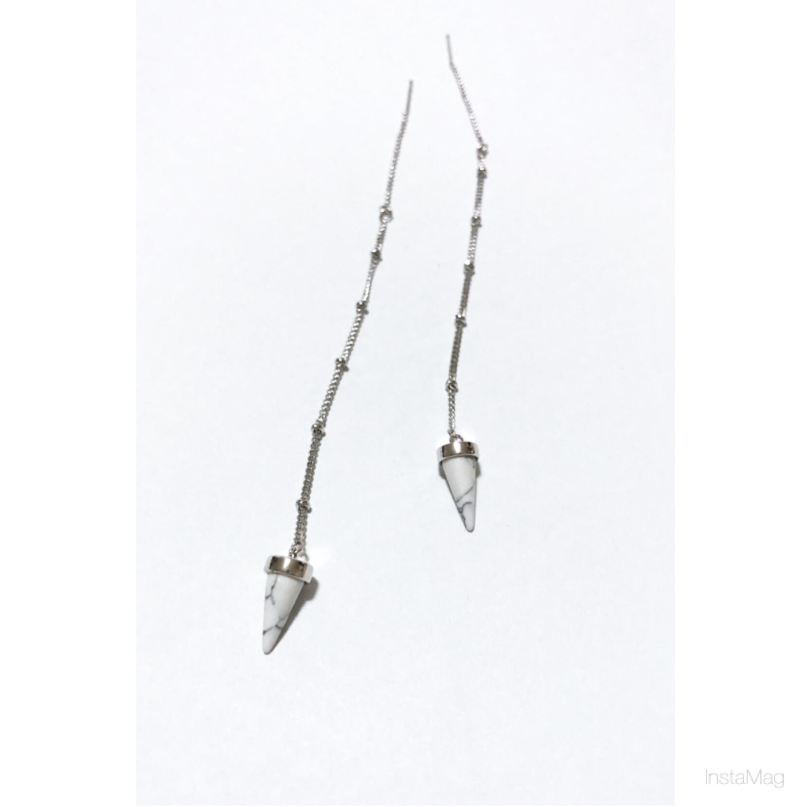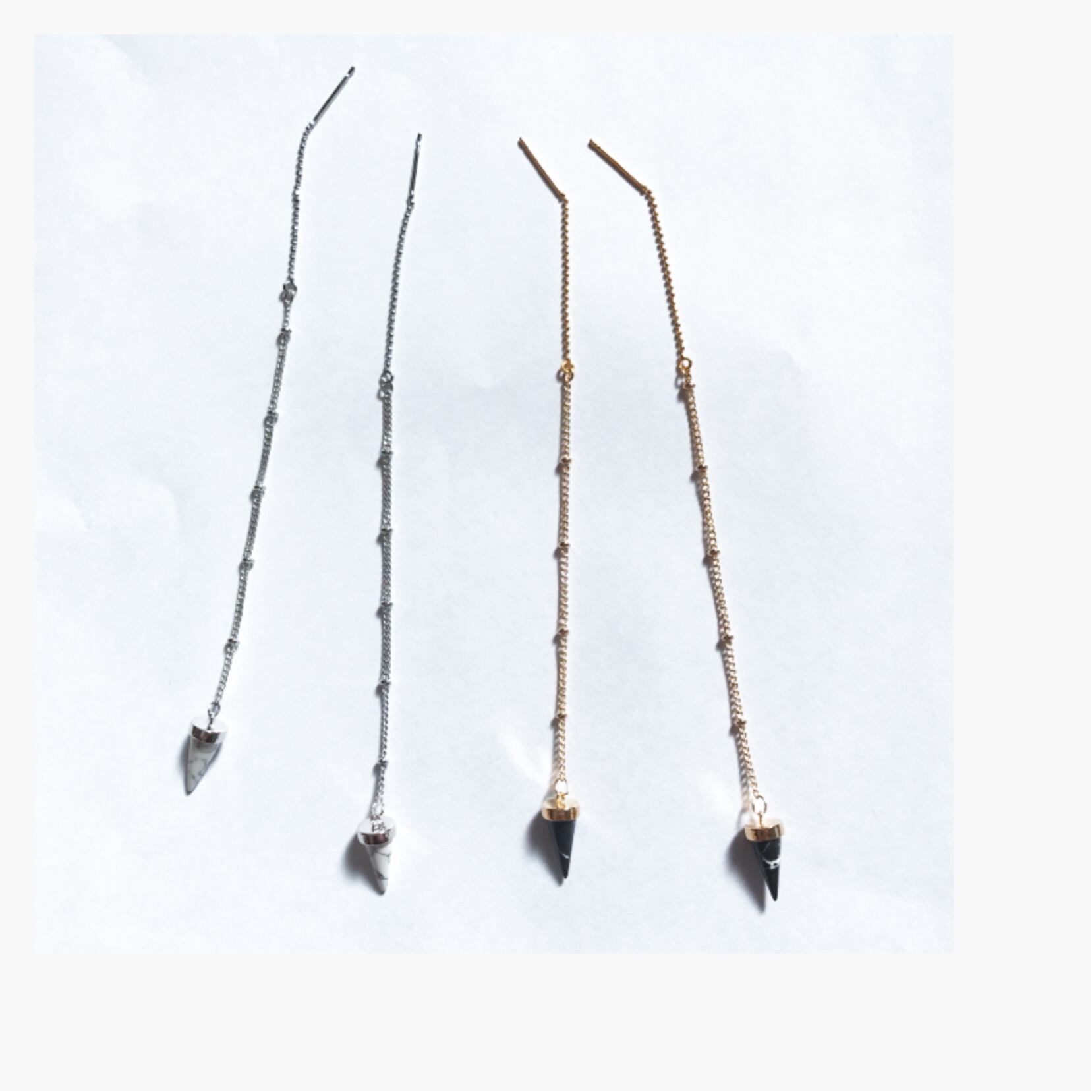 モノトーンな色の三角corn形ストーンのパーツを使用したシンプルなアメリカンピアスです。