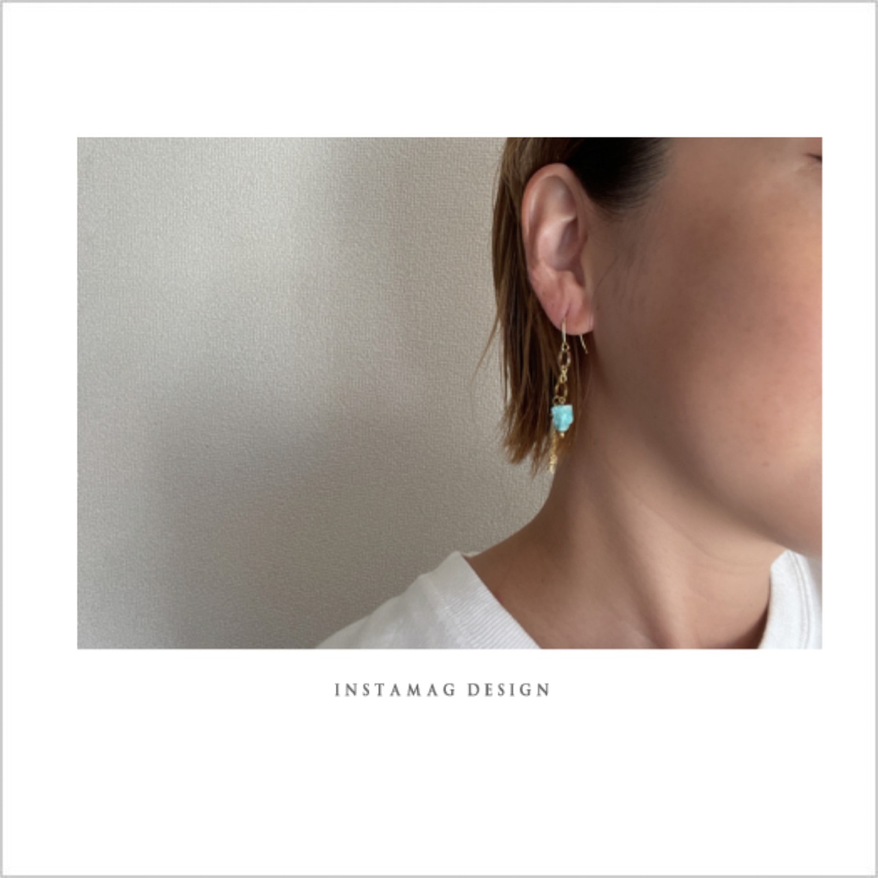 月の模様が入ってるゴールドプレートとブルーの色が綺麗なラリマーを合わせた一点もののピアス、イヤリングです。