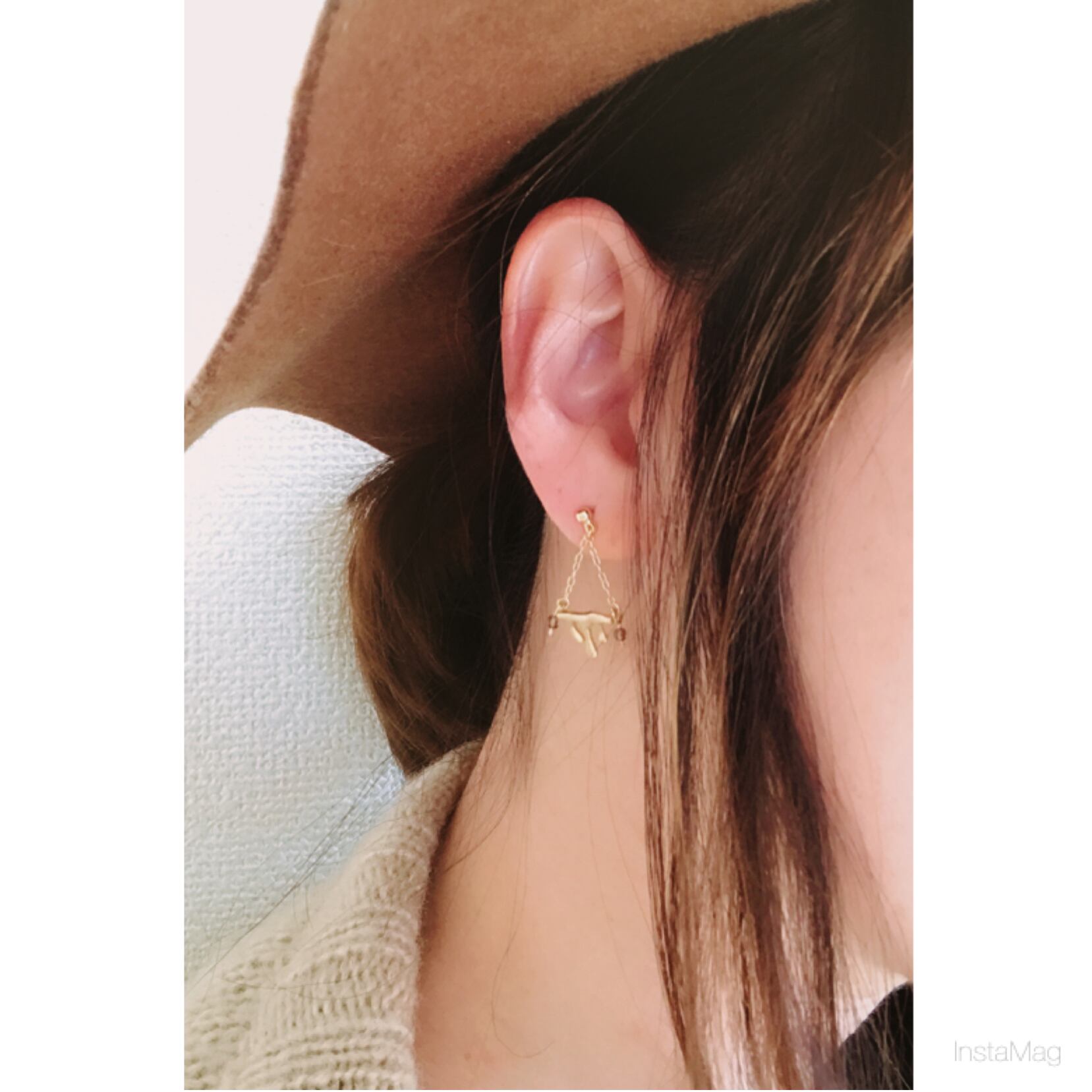 インポートものの珍しい水滴モチーフのパーツに小さなスモーキークォーツをあしらったピアス、イヤリングです。