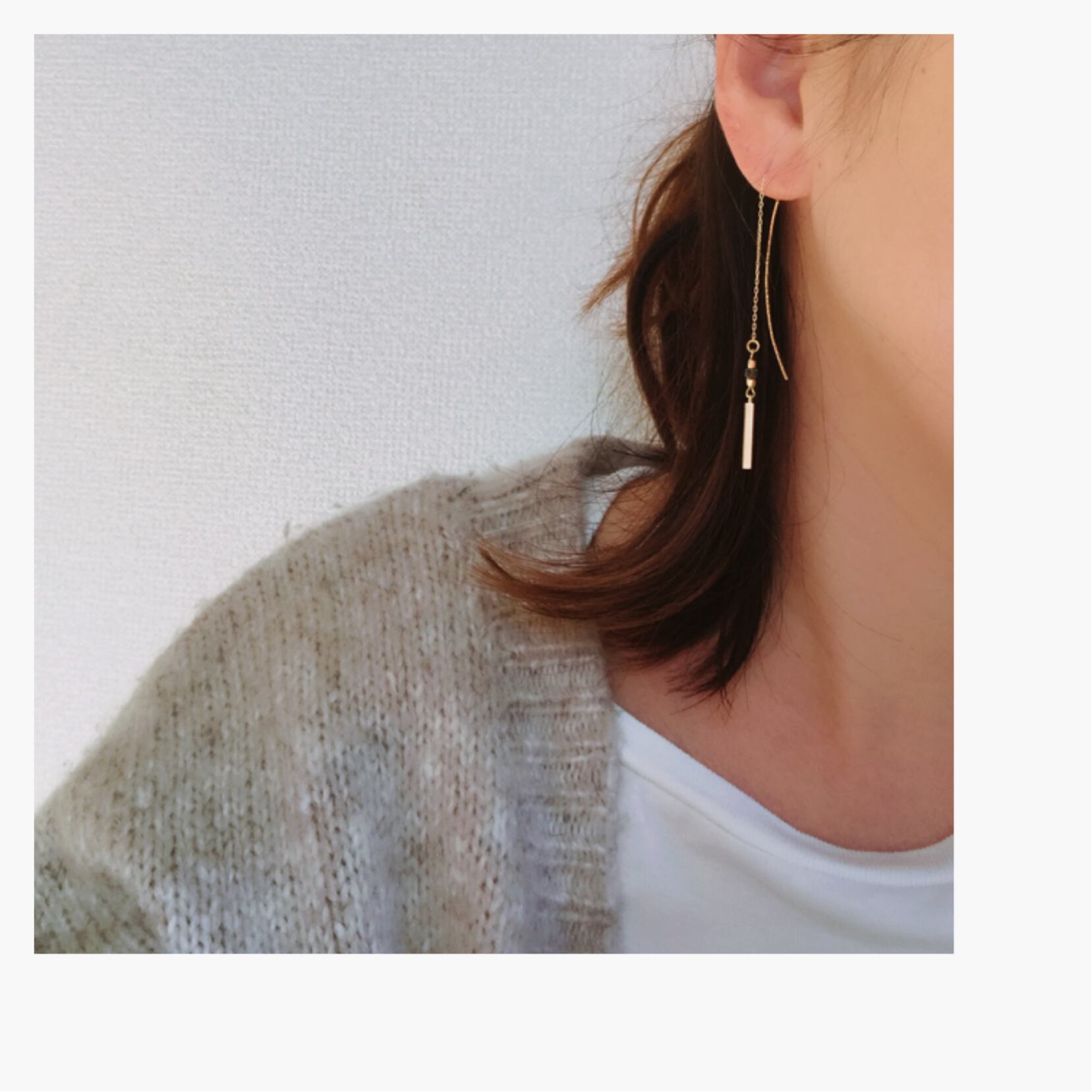 シンプルなゴールドのスティックとターコイズとゴールドビーズのアメリカンピアス。