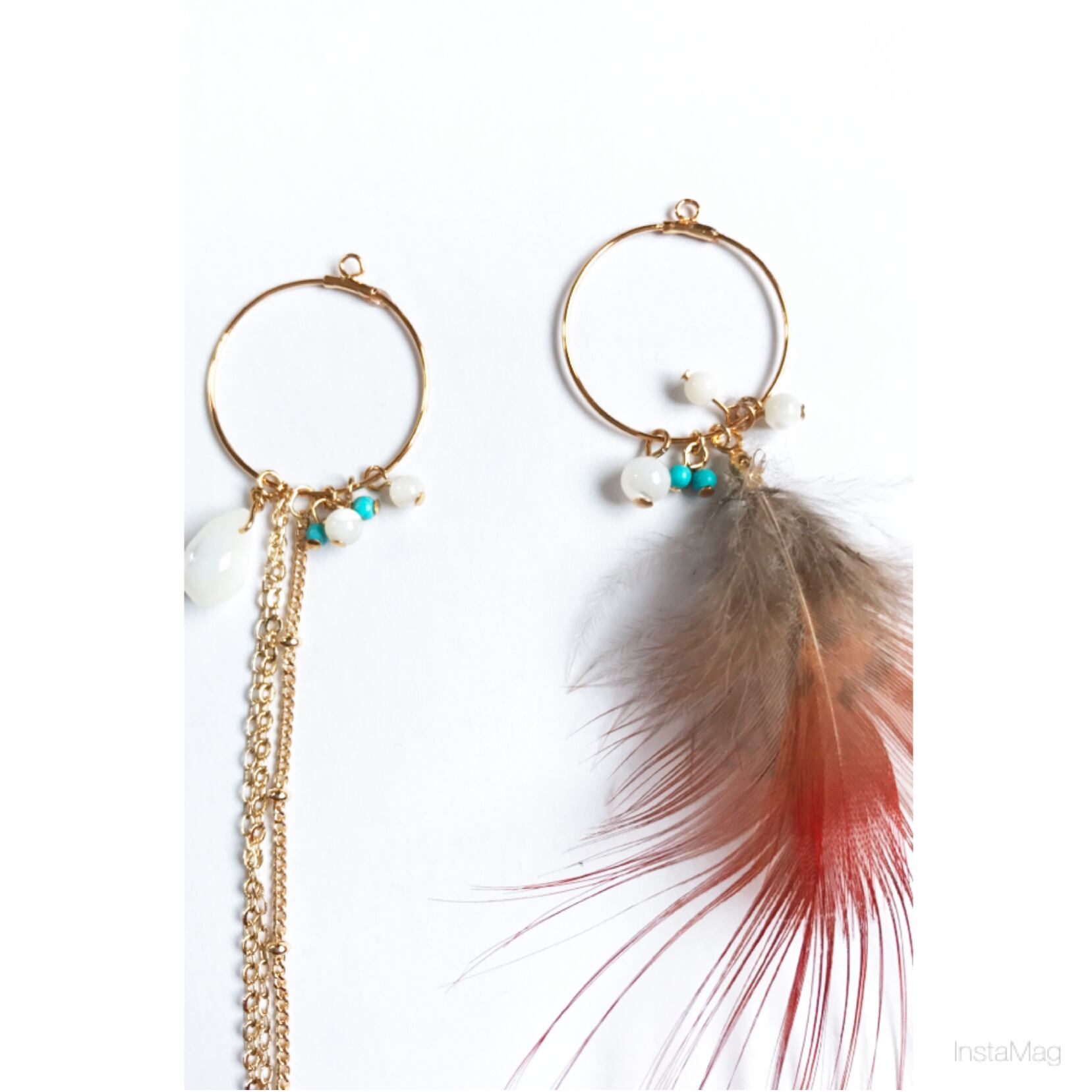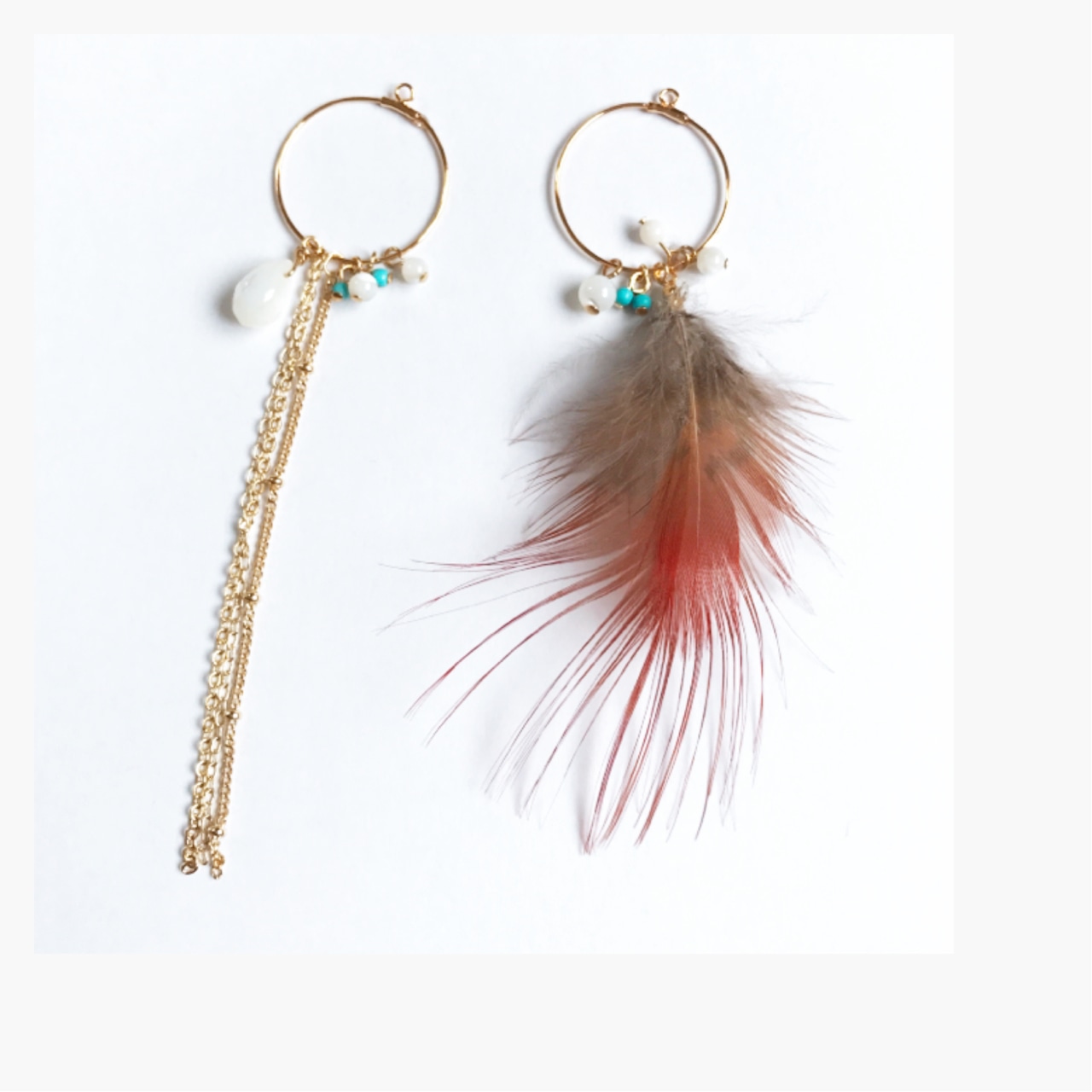 羽、ターコイズ、マザーオパール、メッキ