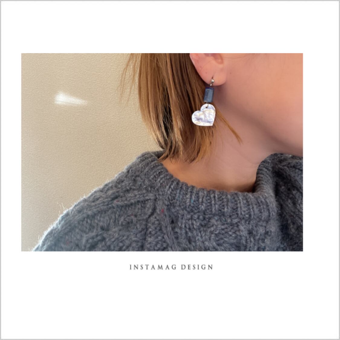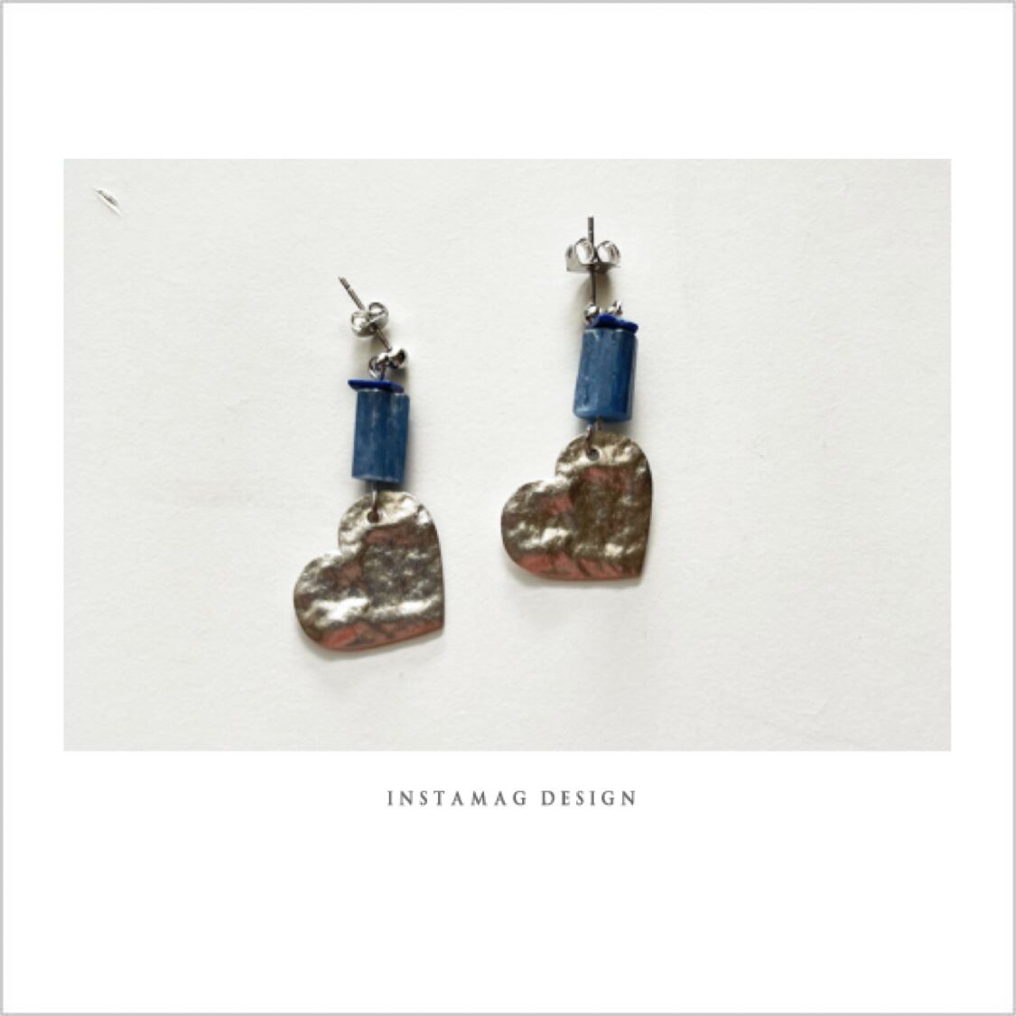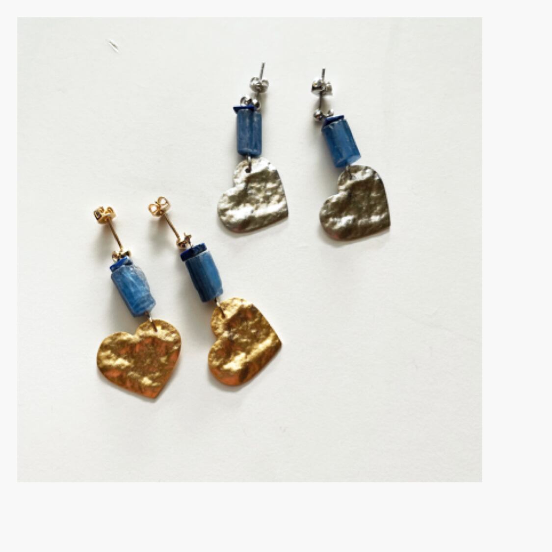 打ちっぱなしのハートをメインにカイヤナイトとラピスラズリのブルーを合わせたピアス、イヤリング。
