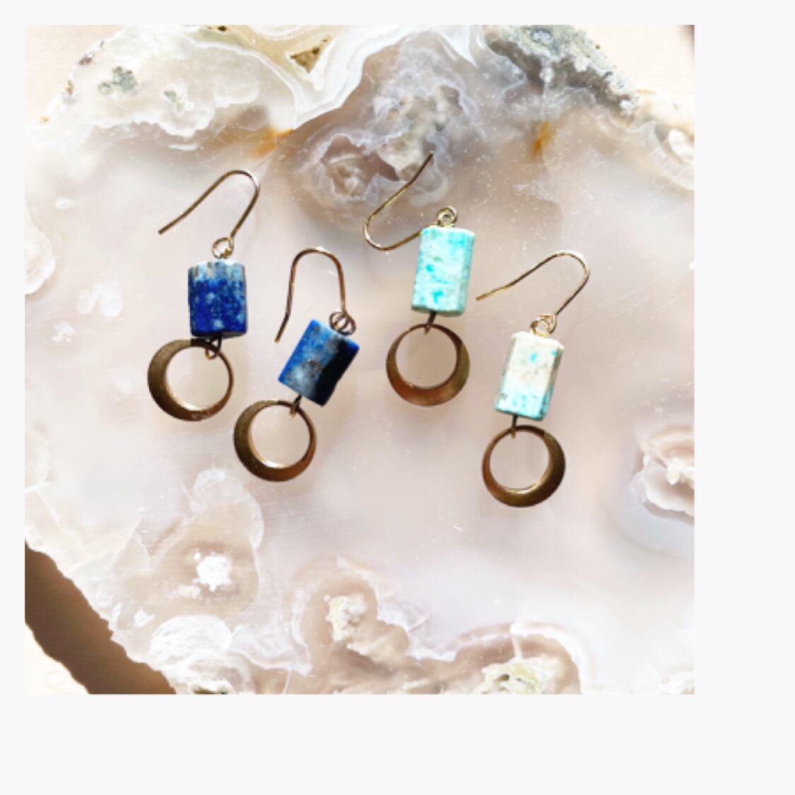 クリソコラ、ラピスラズリ、真鍮、メッキ