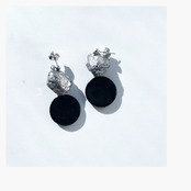 歪なシルバーが特徴的なパイライトとオニキスのピアス、イヤリング。