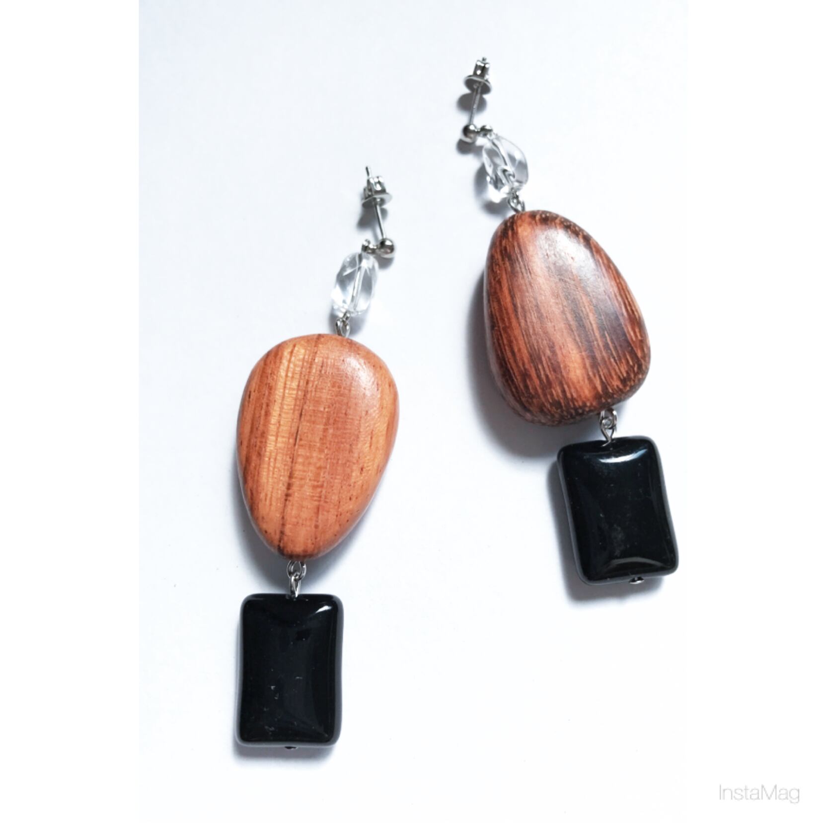 N325ウッド●クリスタル●オニキス●ピアス●イヤリング