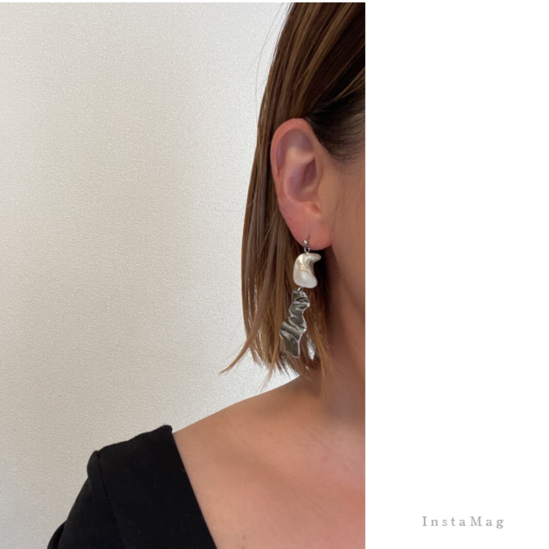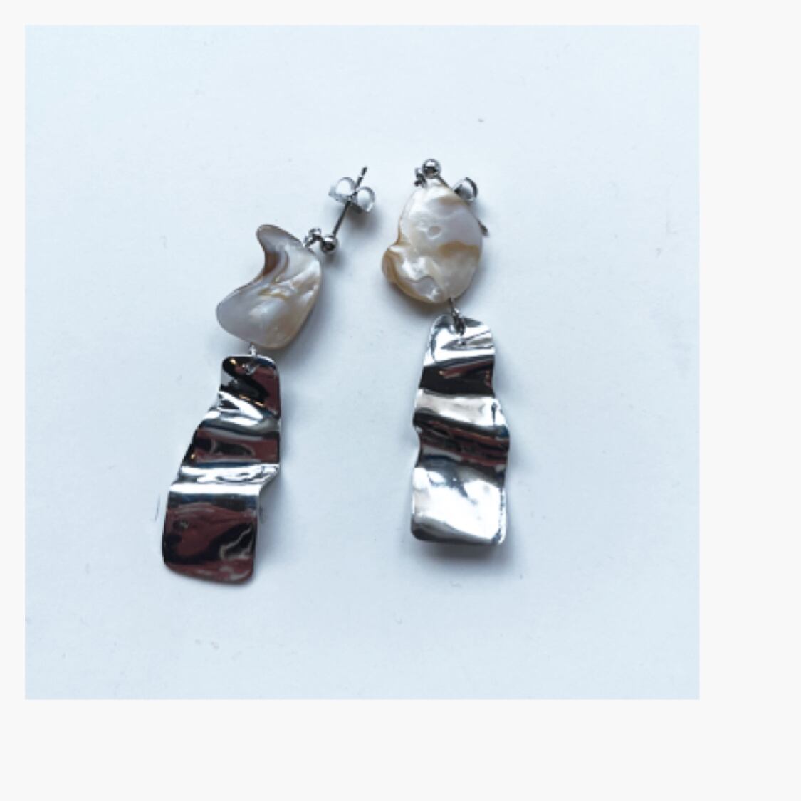 天然な色と形が可愛いシェルとうねりのあるシルバーパーツを合わせたピアス、イヤリング。