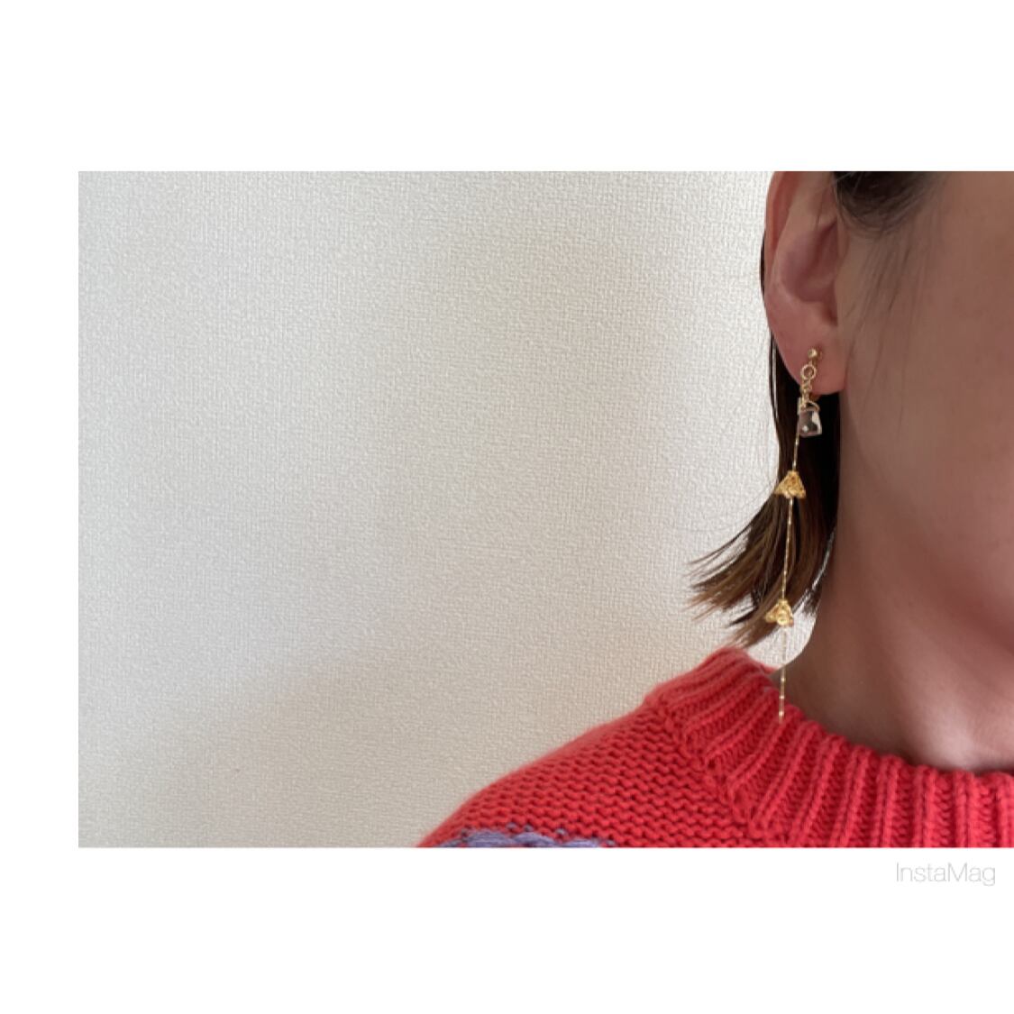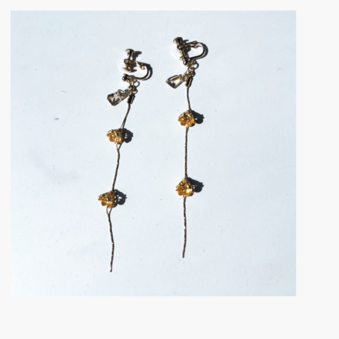 シャンパン色のカットの綺麗なクォーツと華奢なデザインに仕上げたピアス、イヤリングです。
