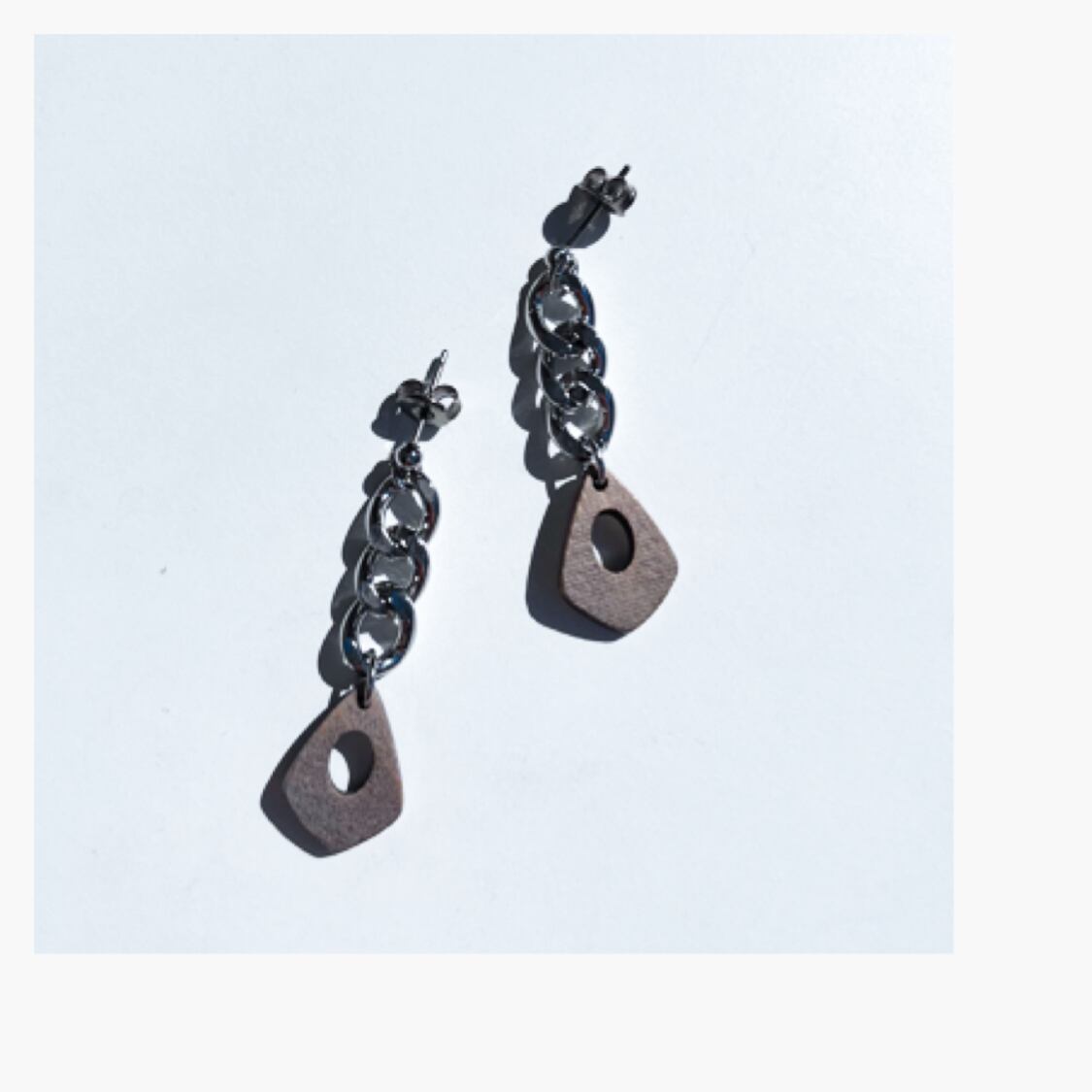小さめなウッドパーツにごつめのチェーンを合わせた大好きなタイプなピアス、イヤリングです。