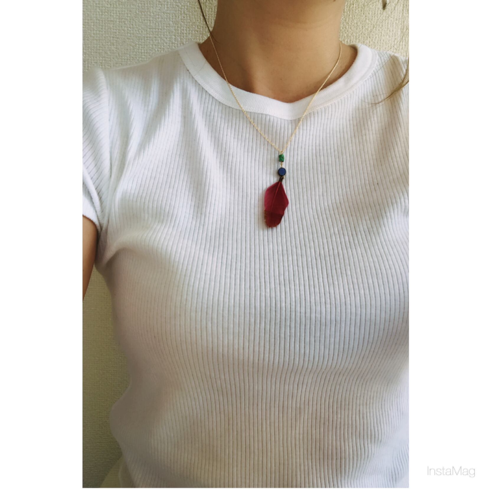 ゴールドかシルバーの色がプラスされた大人ぽい羽のネックレスです。