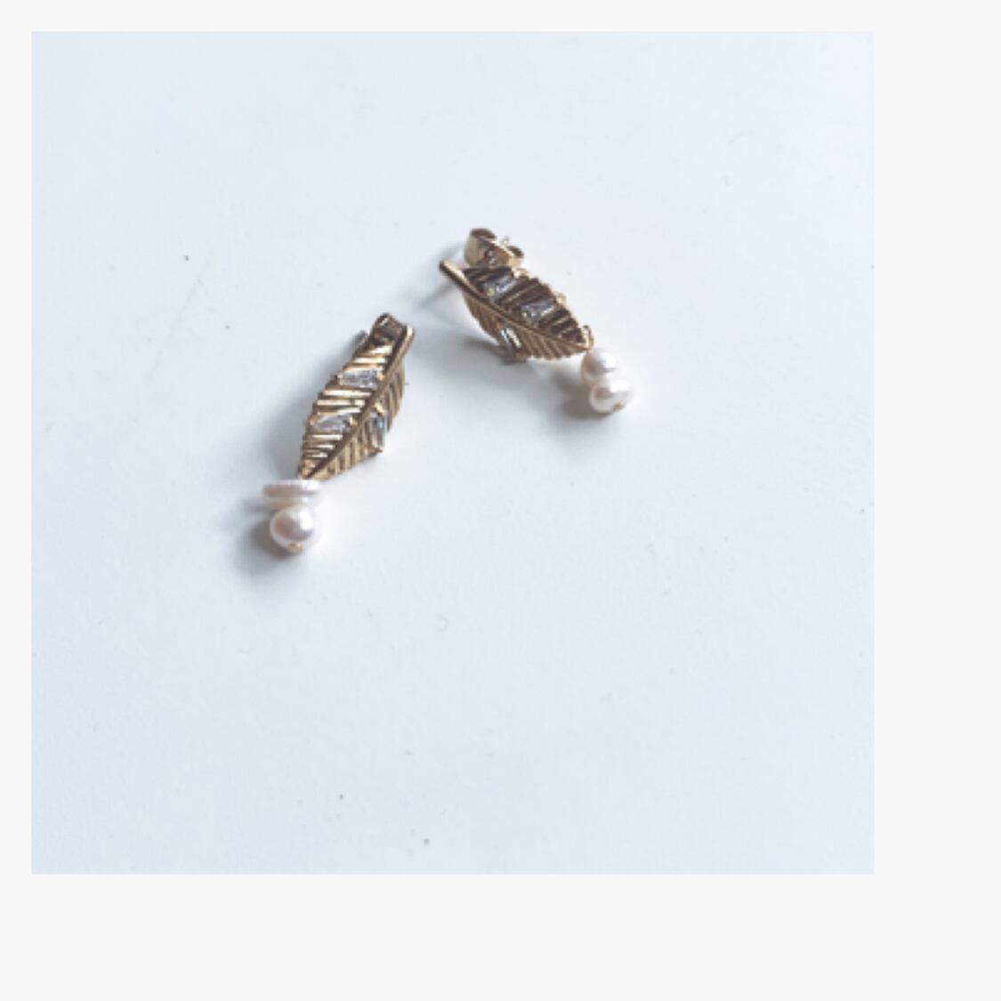 キュービックジルコニアが入ってるリーフピアスをメインに可愛いサイズの淡水パールを合わせたお品です!