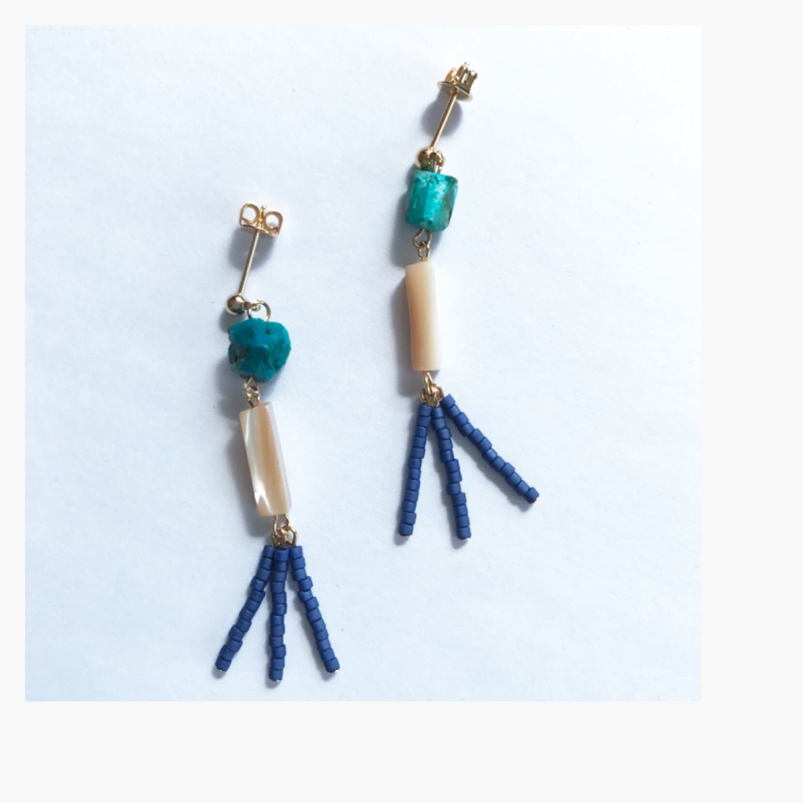クリソコラのグリーンがとっても綺麗なちょっとアクセントのあるピアス、イヤリングです。