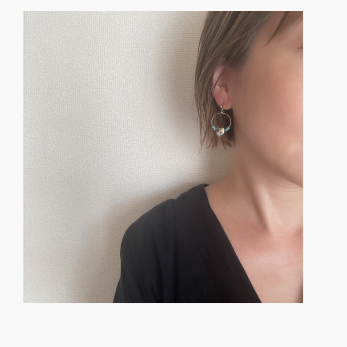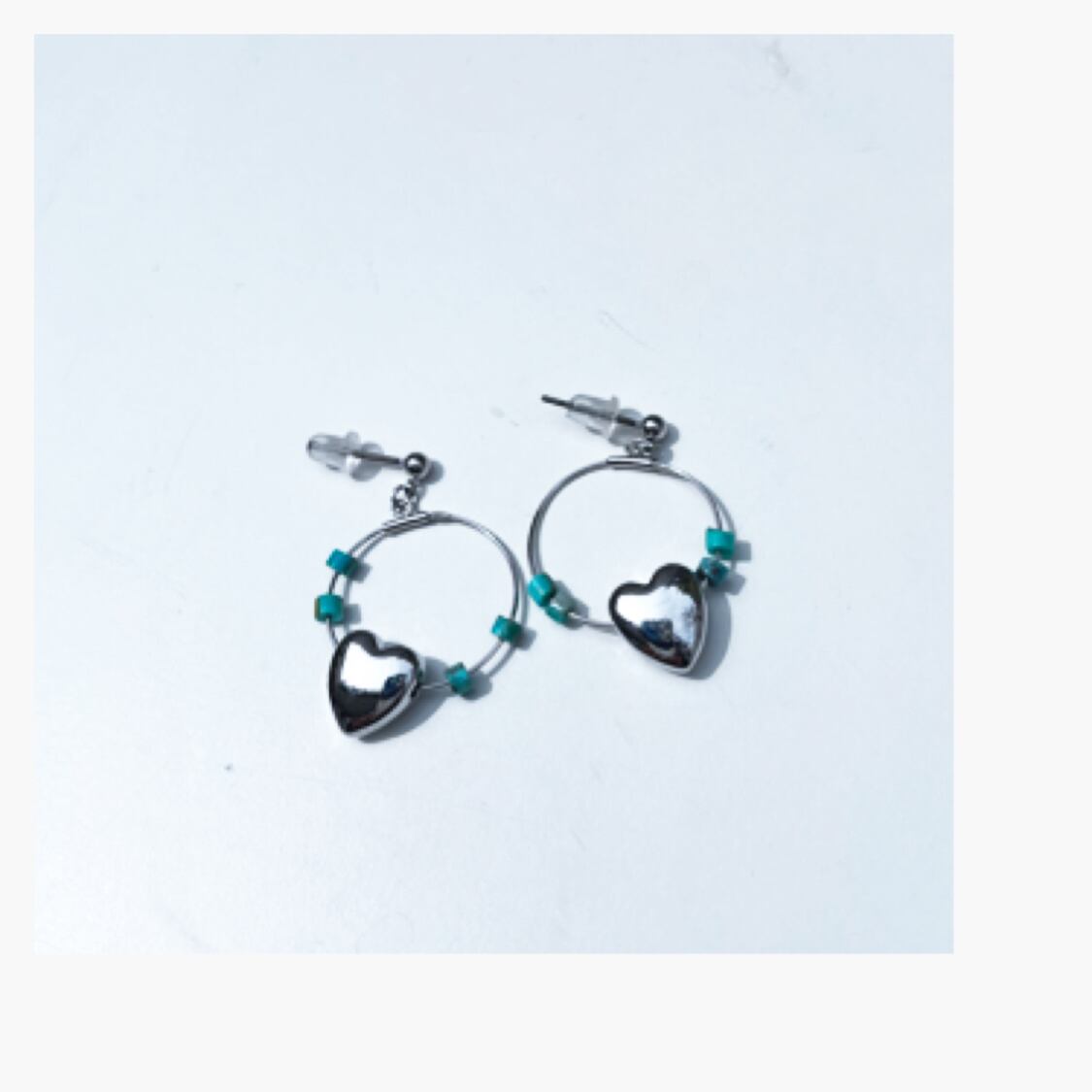 ぷっくりしたハートと、ターコイズを合わせたシンプルなフープピアス、イヤリングです。