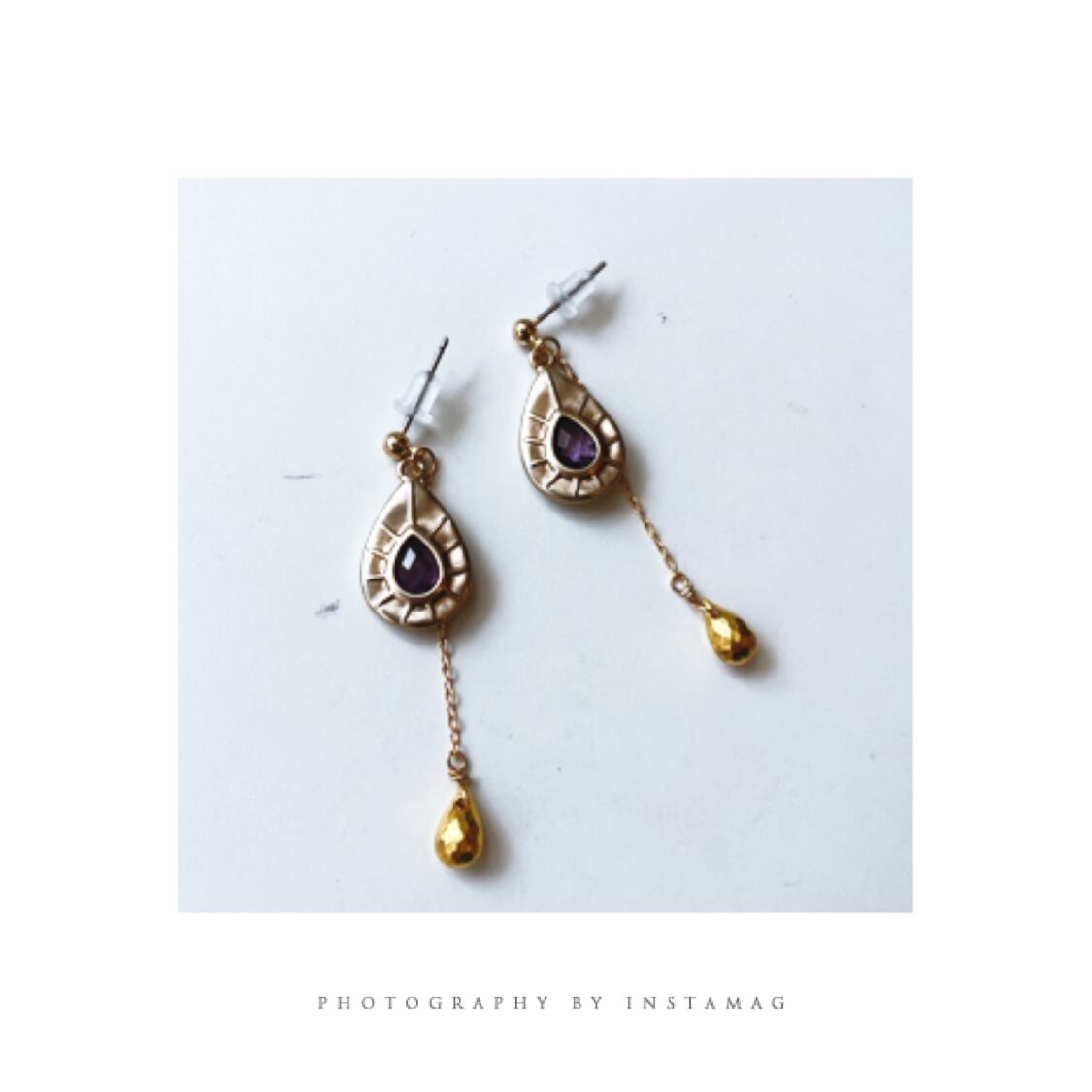ちょっとボヘミアン漂う雰囲気に仕上げたピアス、イヤリングです。