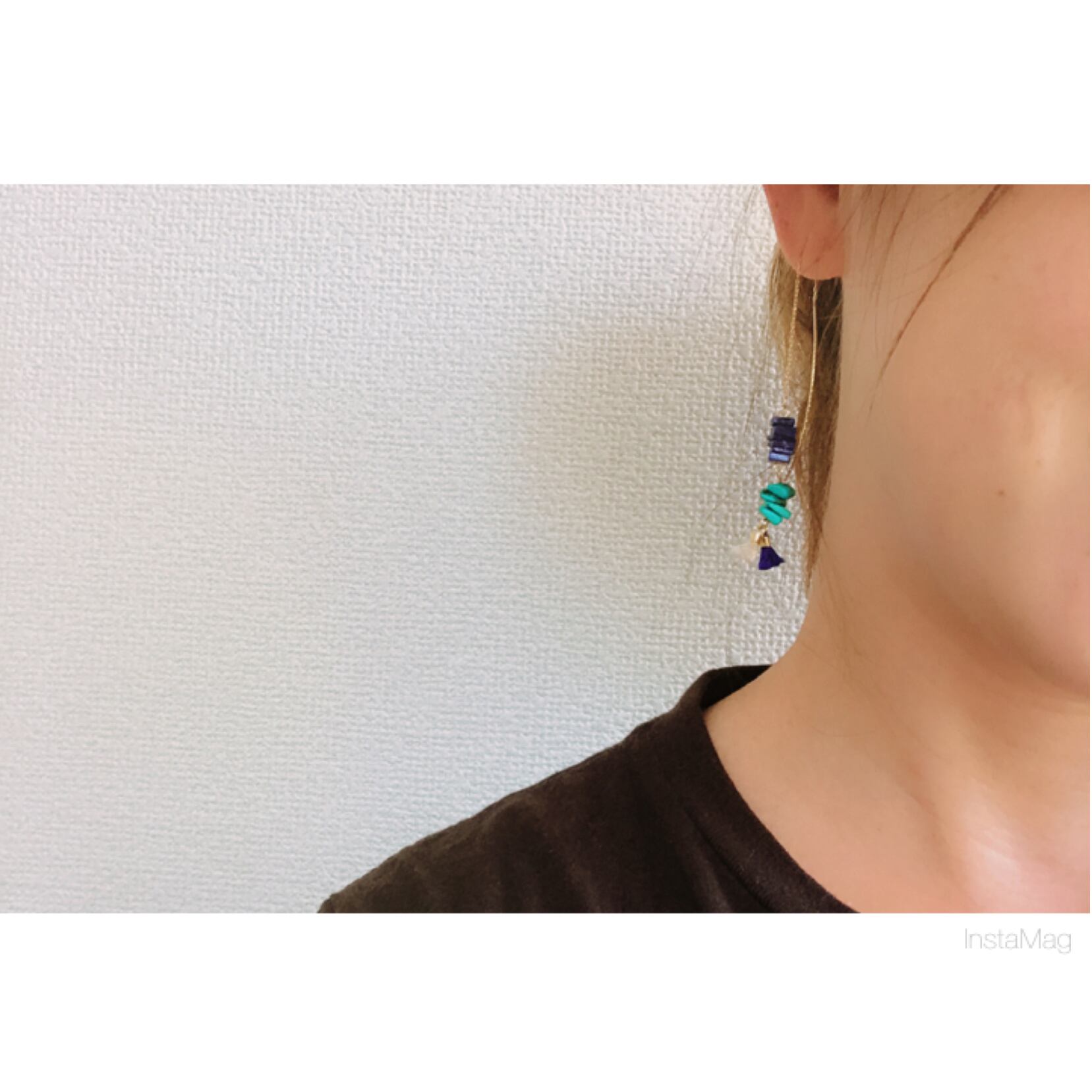 小さめな天然石たちと小さなタッセルをぶらつかせた、とっても可愛らしいピアスです。