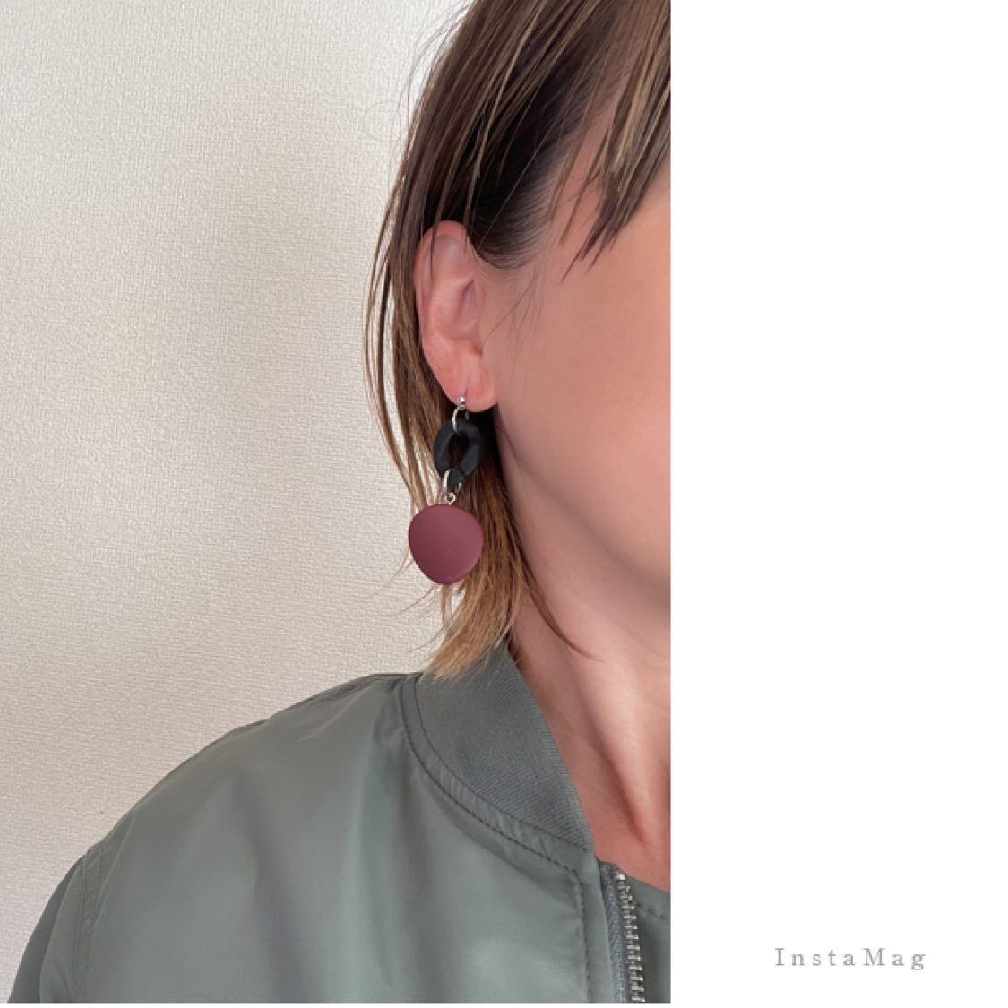 マットなボルドーカラーかグレーカラーとブラックでシックさを出したピアス、イヤリングです。
