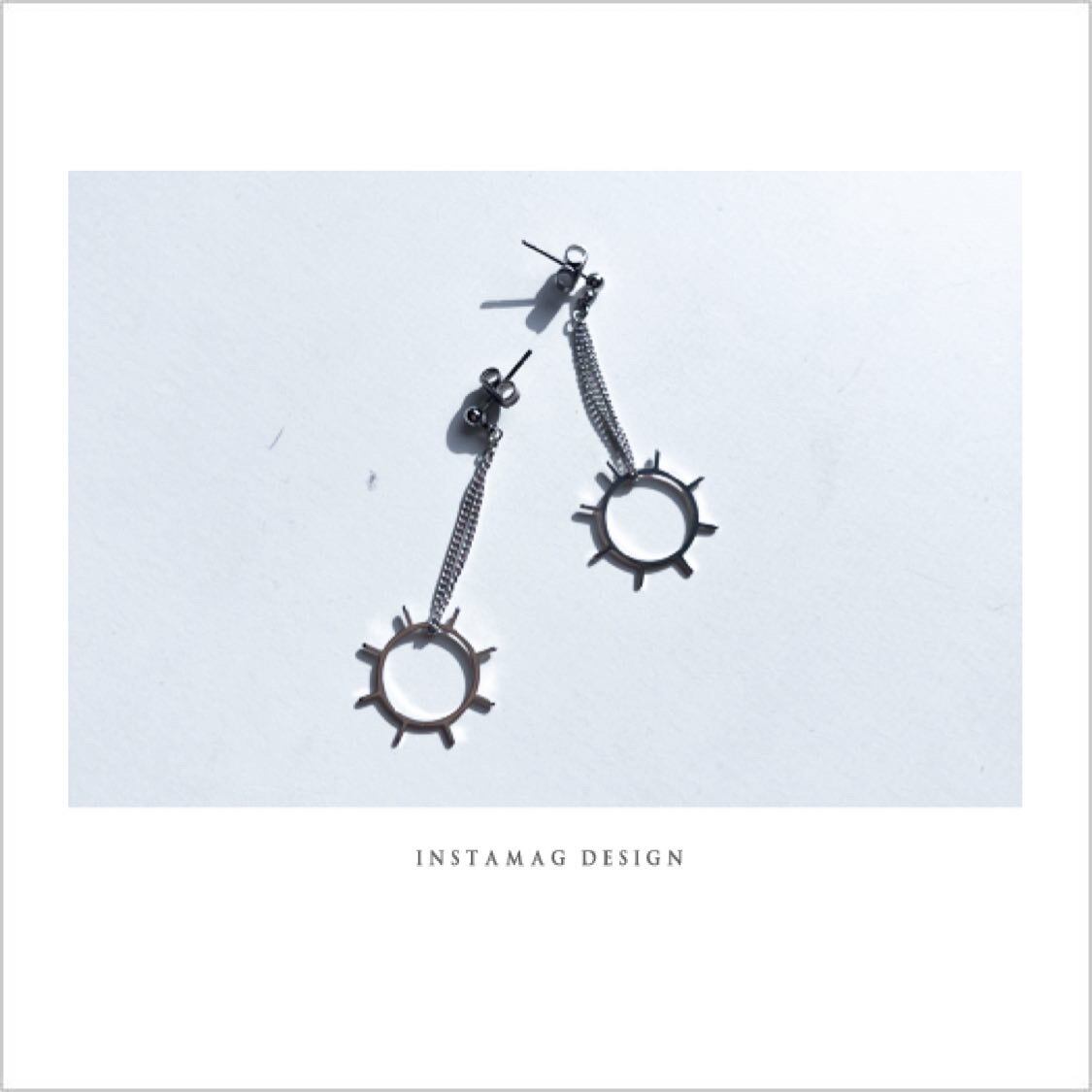 太陽にも見えるモチーフのパーツと細みのチェーンでシンプルに仕上げたピアス、イヤリングです。