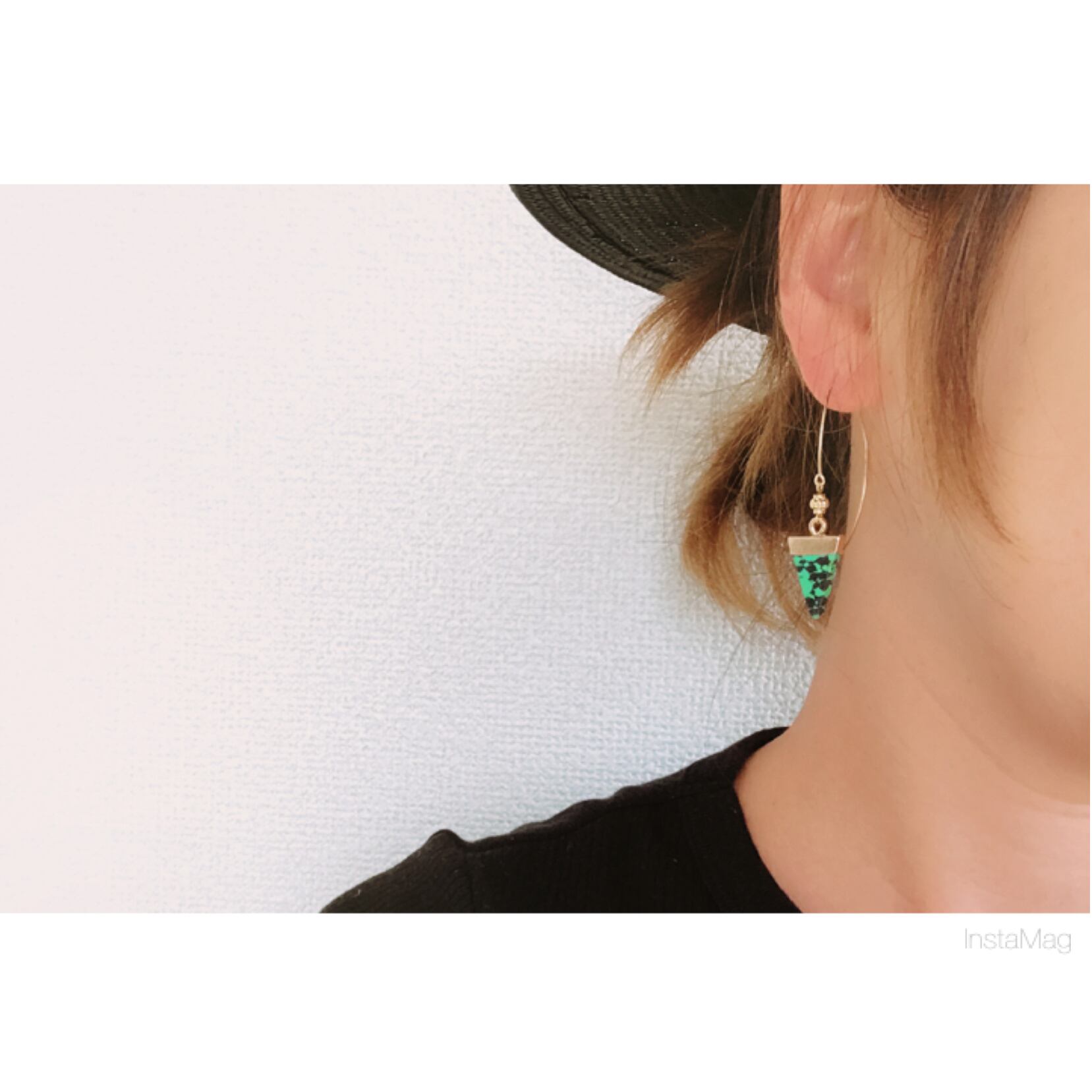 トライアングル形のターコイズが珍しいアメリカンピアスです。