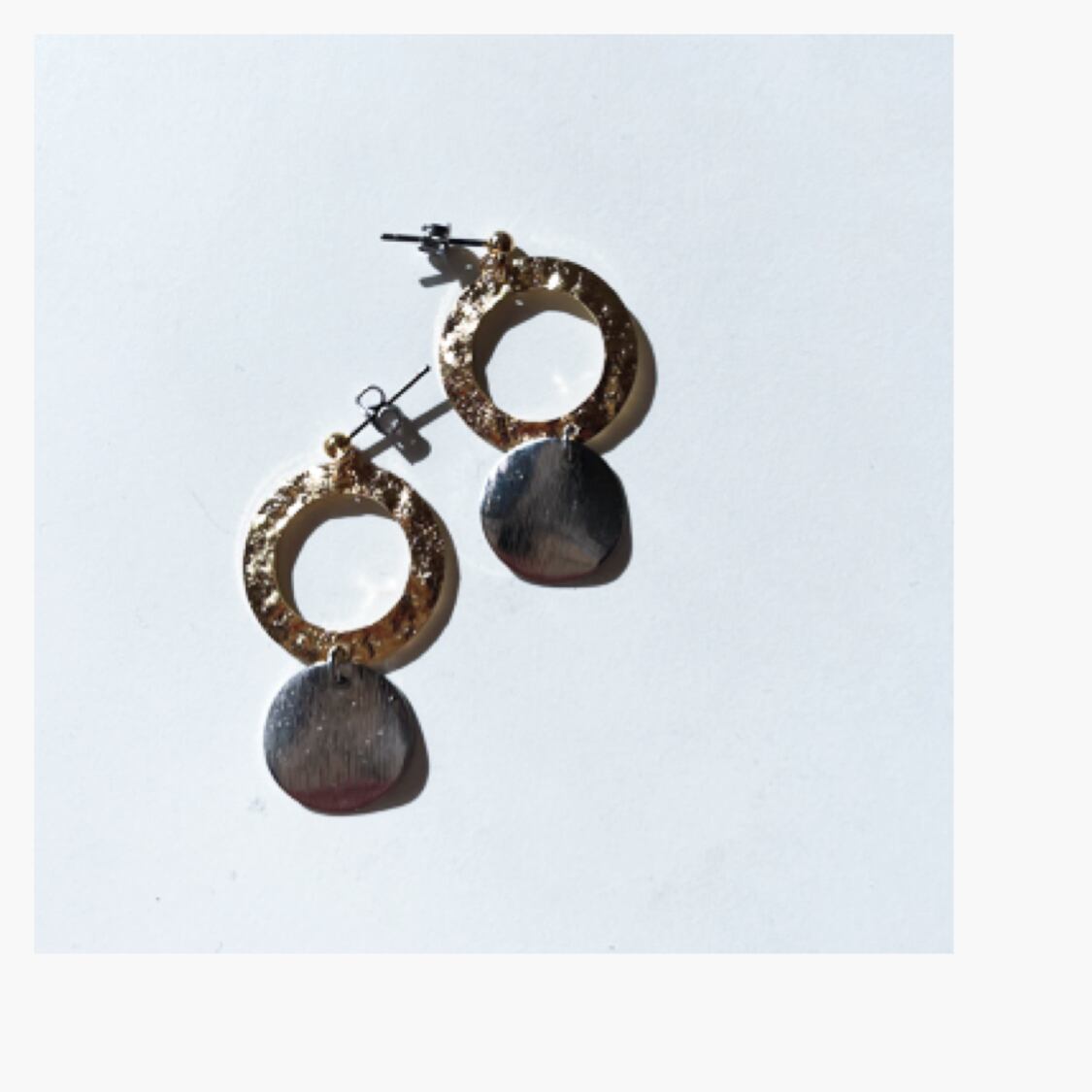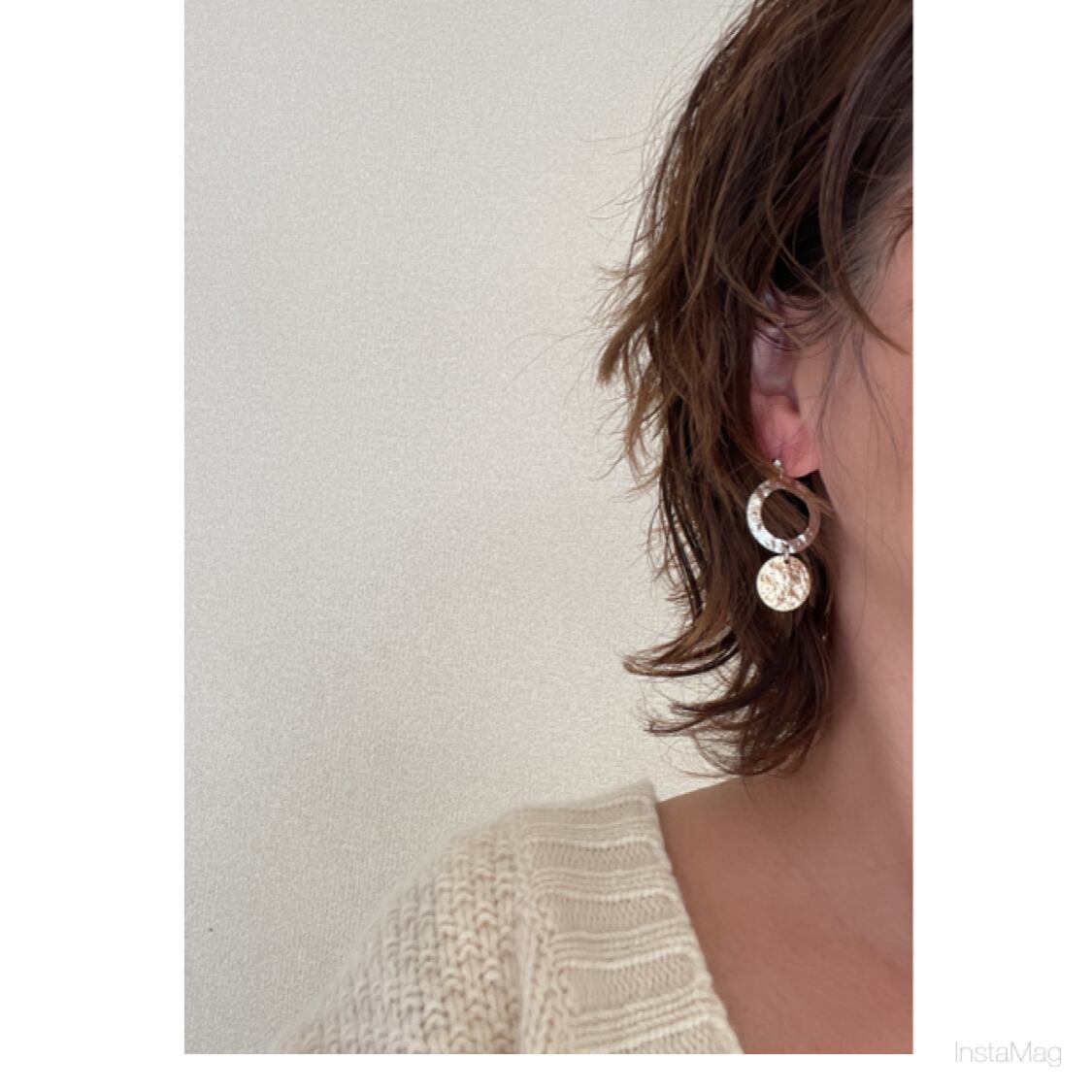 シルバーとゴールドの組み合わせのピアス、イヤリング。