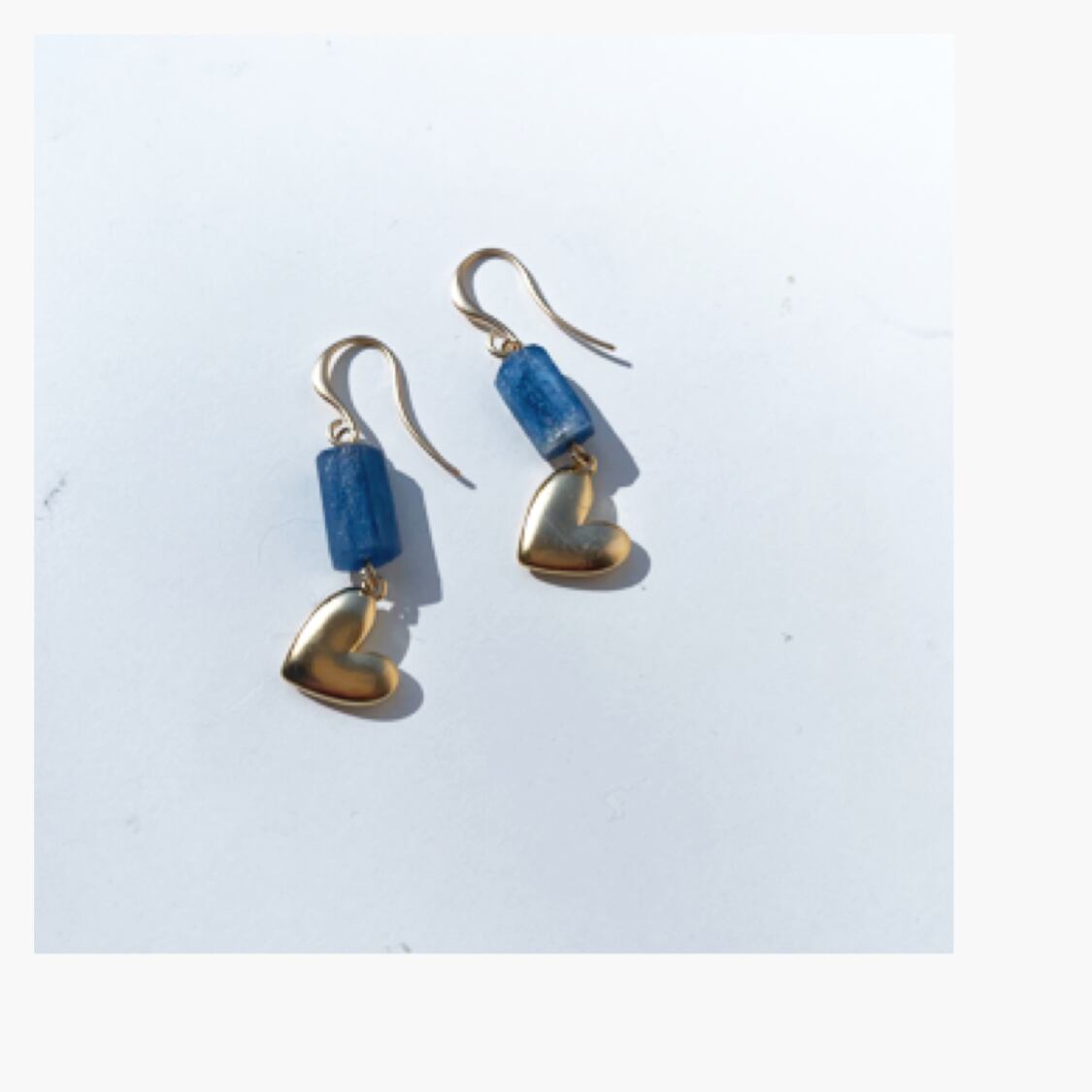 ぷっくりハートに綺麗なブルーのカイヤナイトを合わせたピアス、イヤリングです。