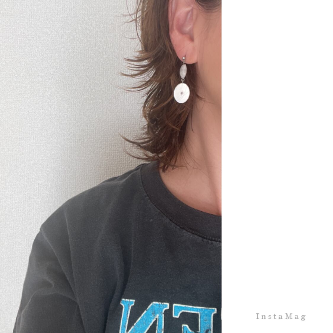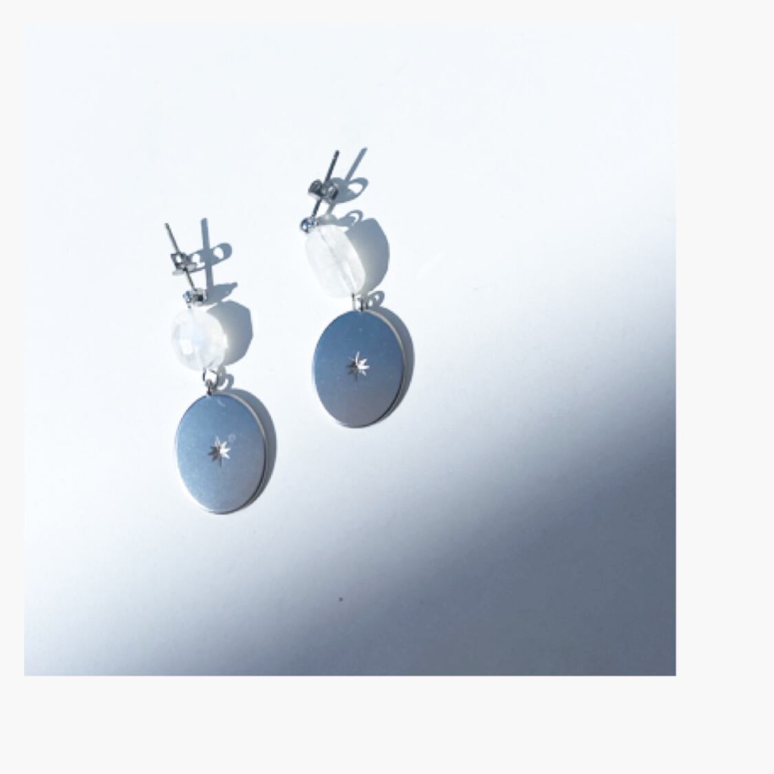 星の彫りが入ったプレートに一目惚れして作ったピアス、イヤリングです。