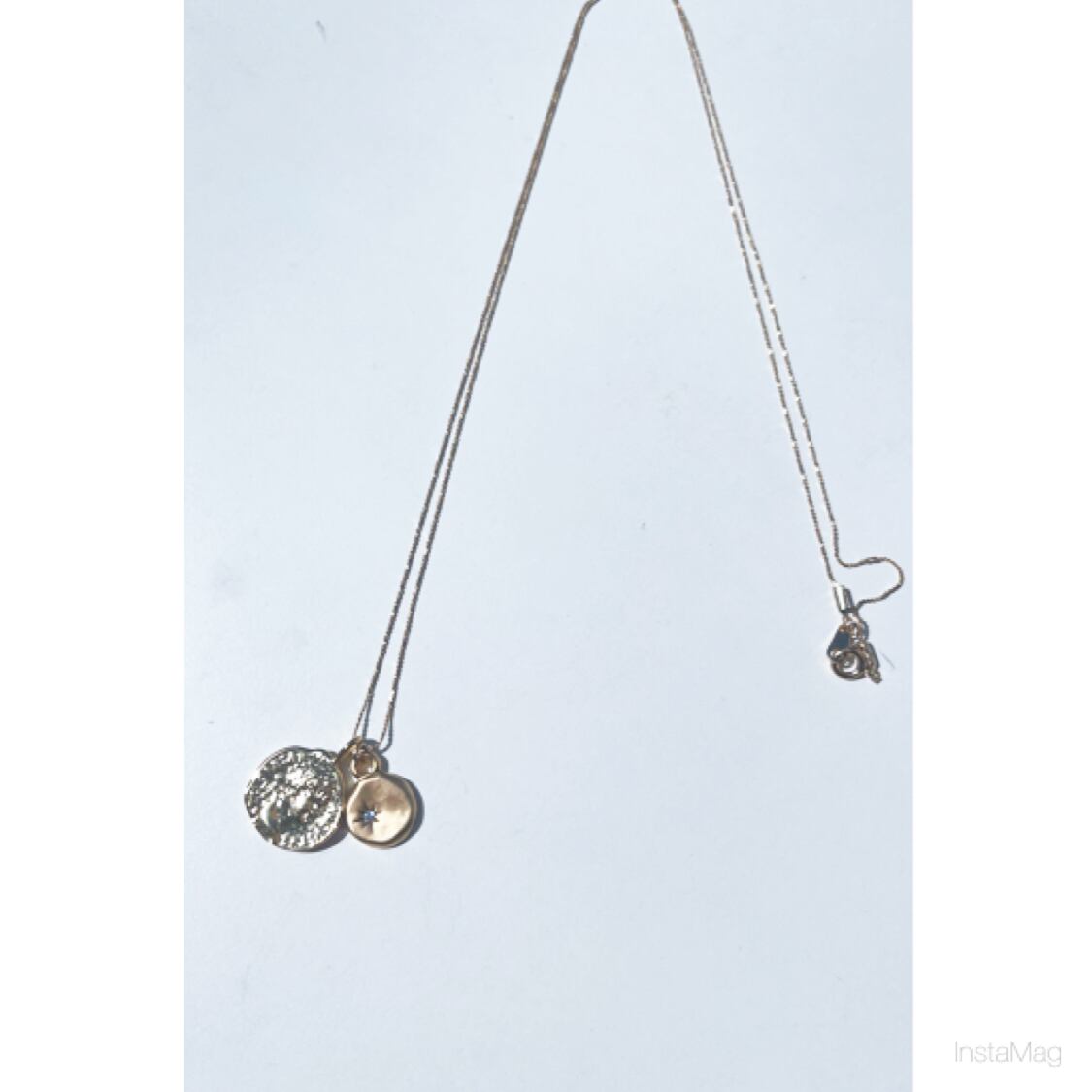 コインとジルコニアの入ったパーツのネックレス。(画像3.4枚目)