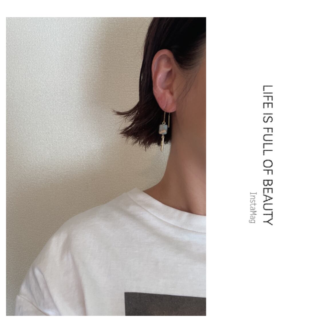 羽モチーフチャームとインプラッシュストーンのシンプルデザインのアメリカンピアス。