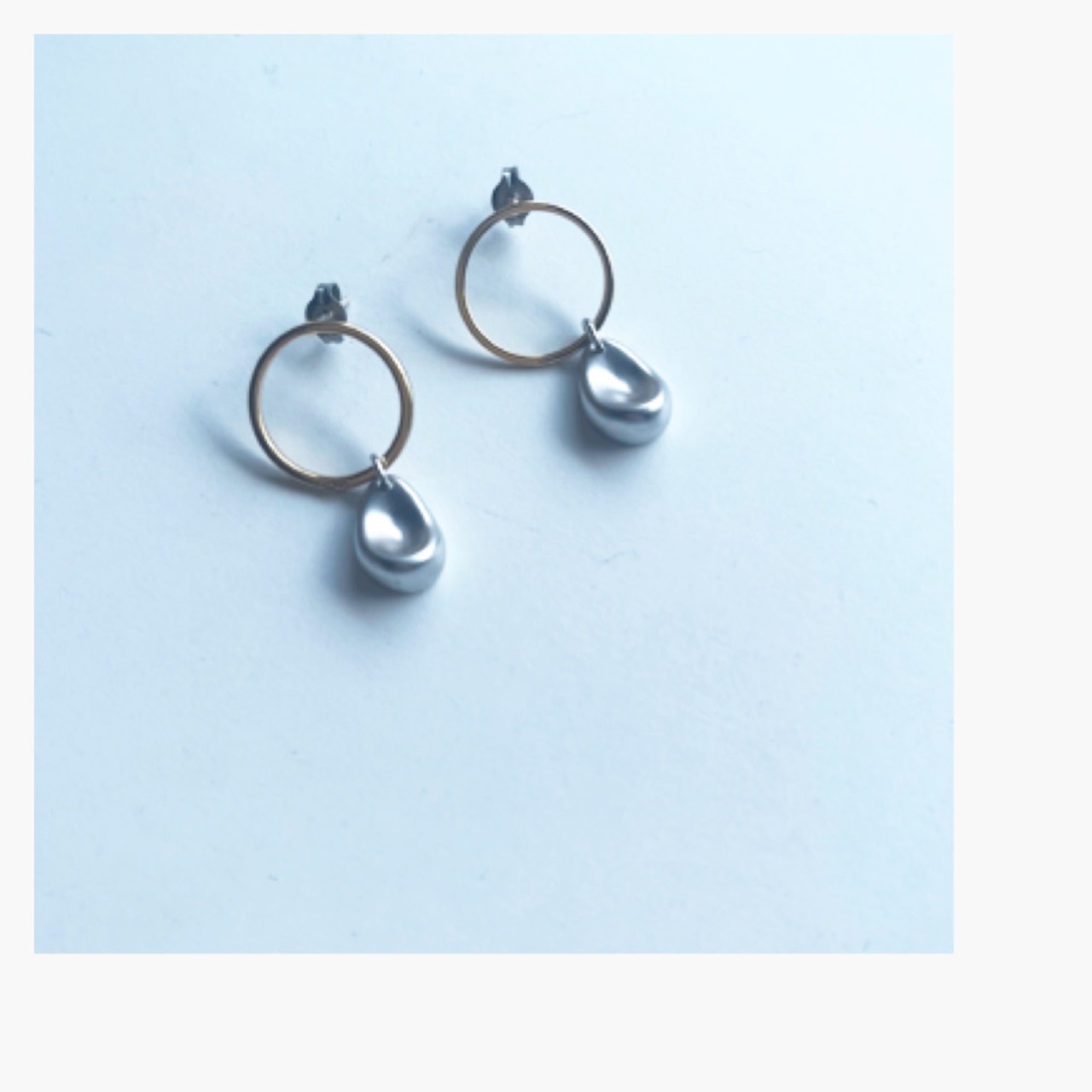 ゴールドの小さめなフープピアスにコロンとしたフォルムが可愛いマットシルバーのパーツを合わせたシンプルなピアス。