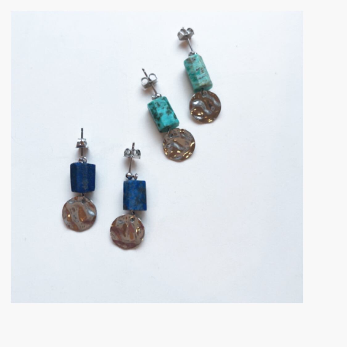 綺麗な海の色のようなクリソコラ(画像2枚目)と、深いネイビー色が大人ぽいラピスラズリ(画像3枚目)。
